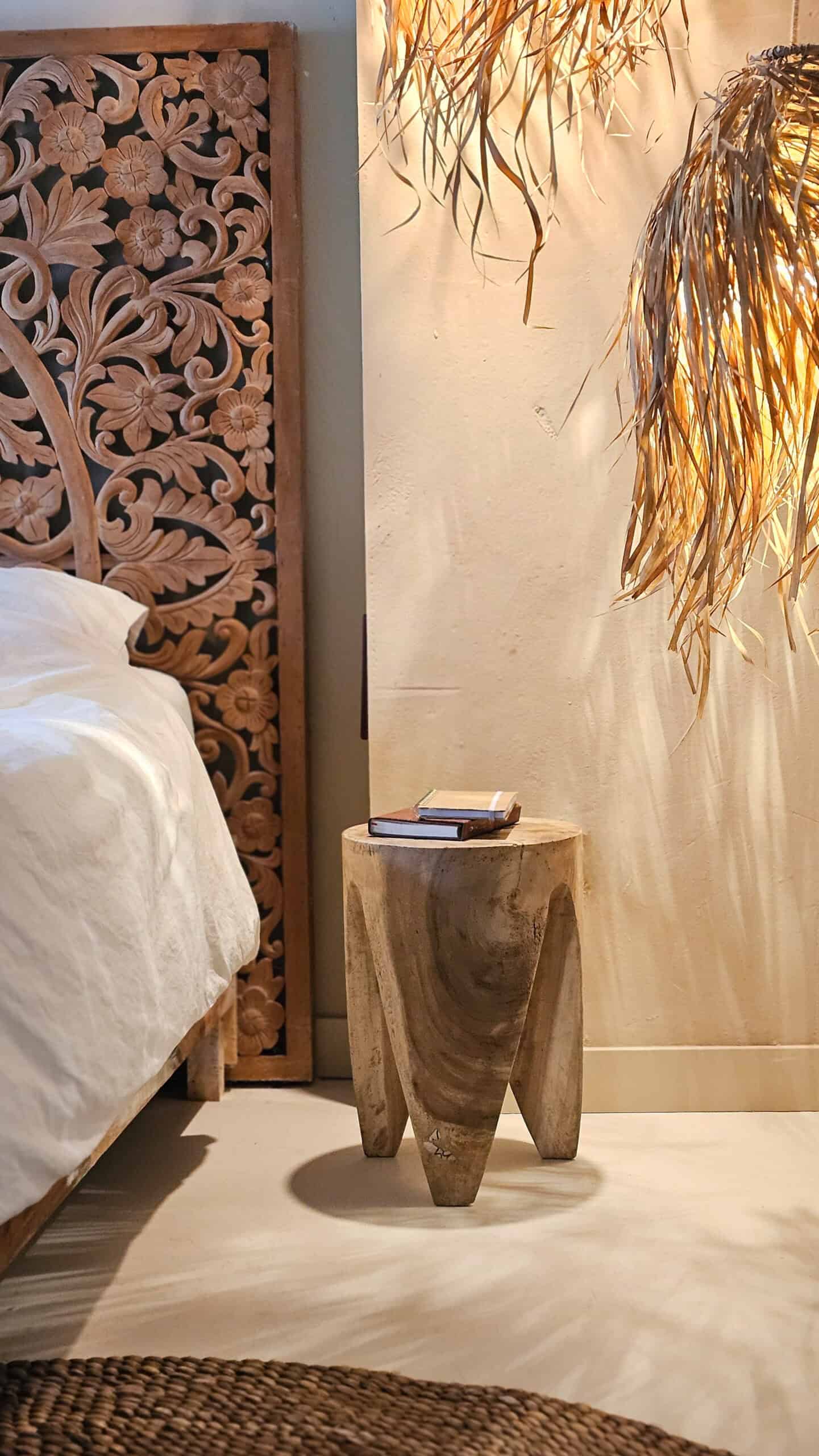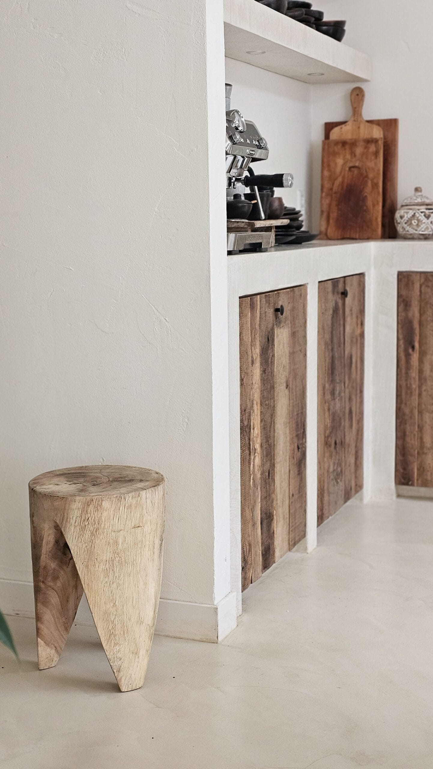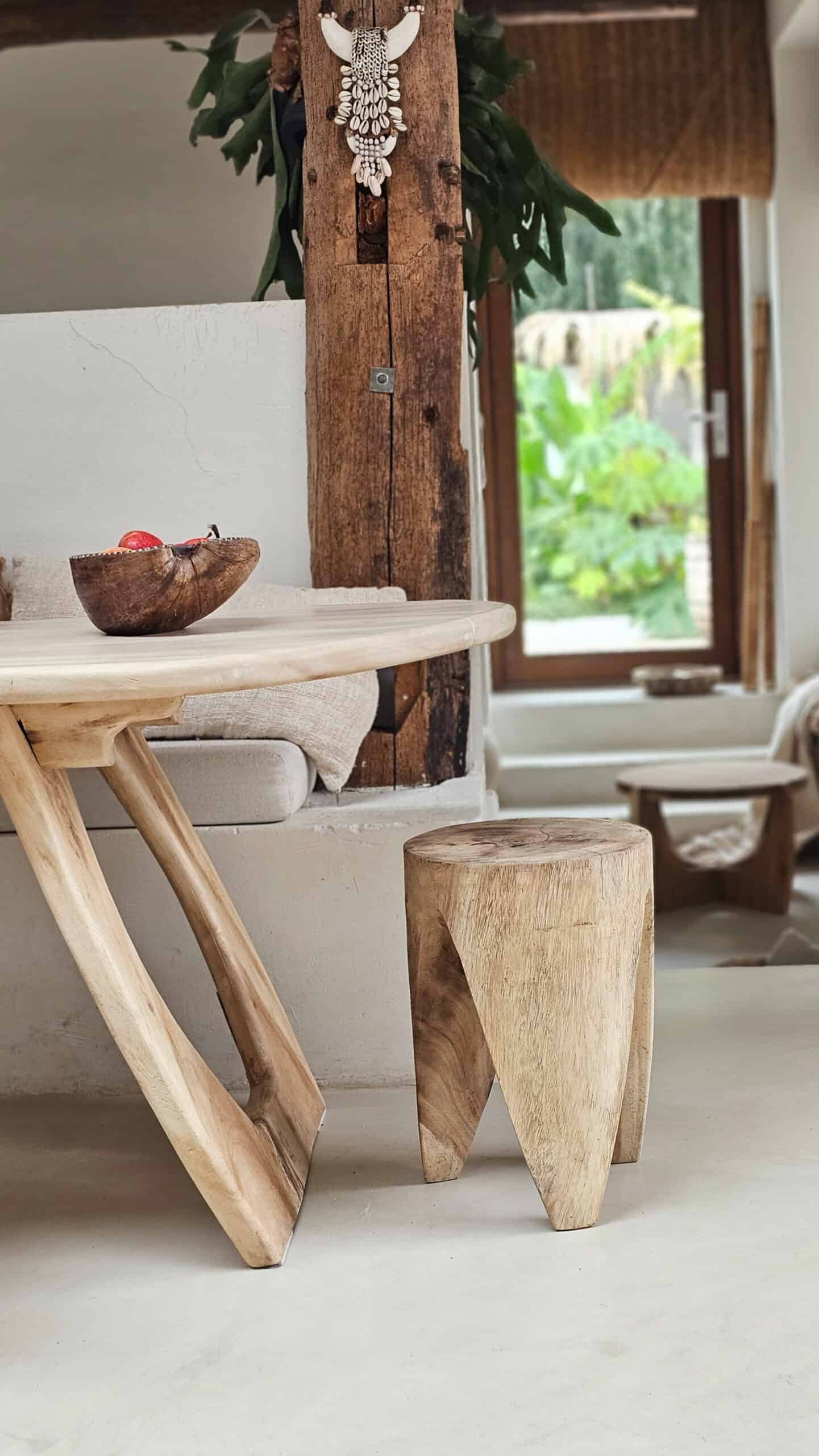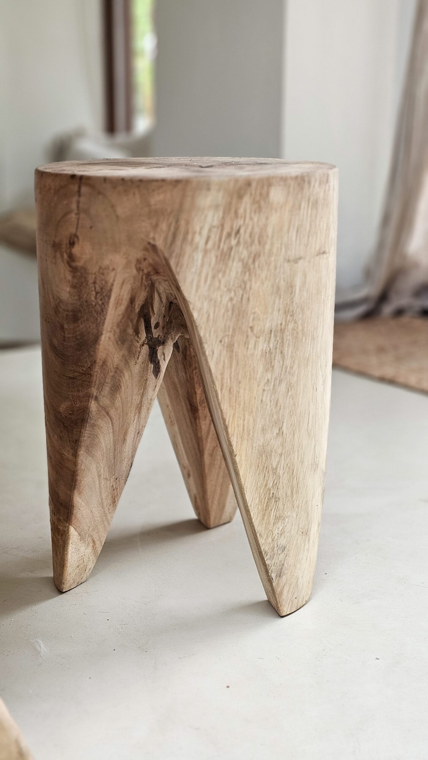 Een stoere kruk / bijzettafel! Prachtige sfeer creëer je met dit krukje wat je natuurlijk ook als bijzettafeltje kan gebruiken. Uniek met z’n drie tabse poten. Mooi door z´n imperpecte houtskleur en grillige vorm. Ze zijn handgemaakt en kunnen dus afwijken van de foto. Dit maakt ze natuurlijk wel uniek!