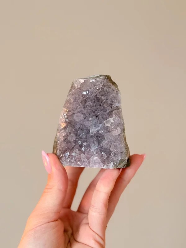 De amethist staat bekend om zijn kalmerende en beschermende werking op de geest. Het bevordert innerlijke rust, vermindert stress en angst, en kan helpen bij slapeloosheid en hoofdpijn. Daarnaast wordt de steen geassocieerd met spirituele groei en intuïtie, en kan het ondersteuning bieden bij meditatie.