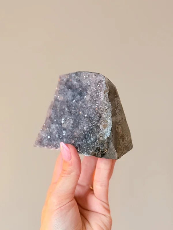 De amethist staat bekend om zijn kalmerende en beschermende werking op de geest. Het bevordert innerlijke rust, vermindert stress en angst, en kan helpen bij slapeloosheid en hoofdpijn. Daarnaast wordt de steen geassocieerd met spirituele groei en intuïtie, en kan het ondersteuning bieden bij meditatie.