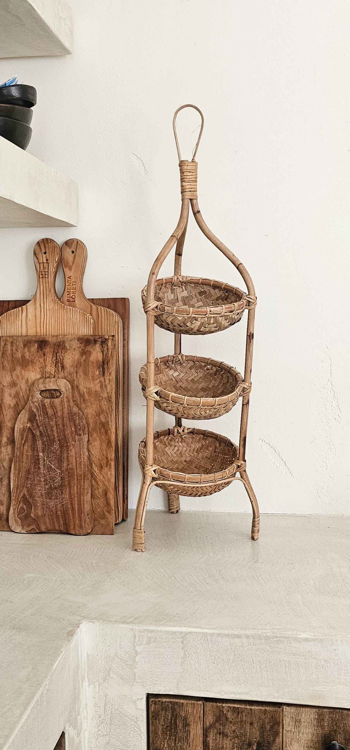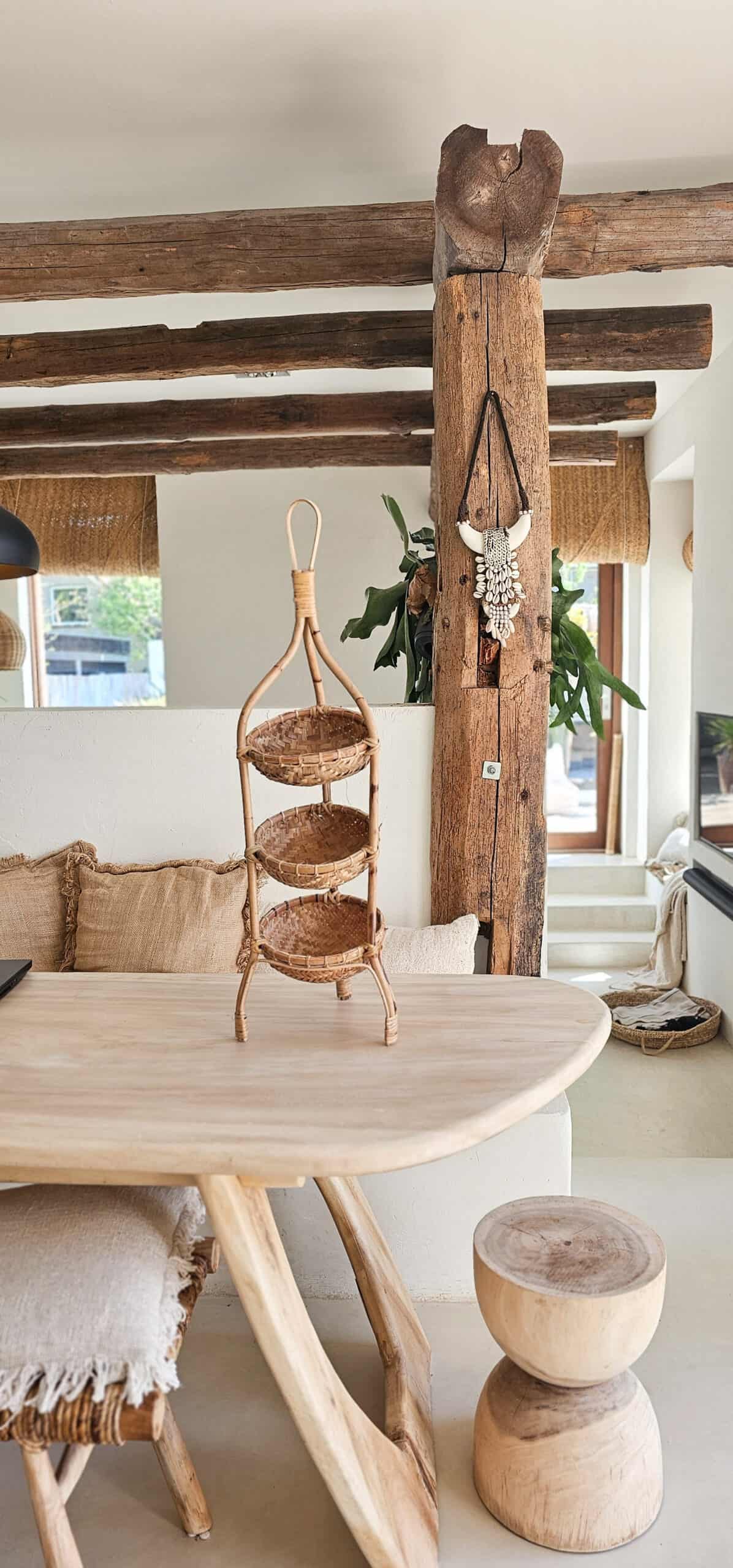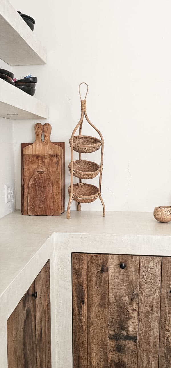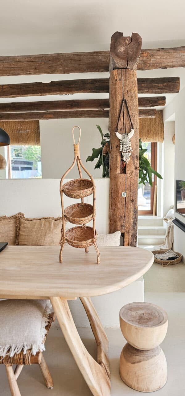 Perfect voor het organiseren en presenteren van decoratieve items, lekkernijen of servies. Met zijn natuurlijke uitstraling en robuuste constructie voegt deze etagère een warme en rustieke sfeer toe aan je interieur. De lagen bieden voldoende ruimte voor diverse toepassingen, of je hem nu gebruikt in de keuken, eetkamer of in de badkamer voor je handdoekjes. Een tijdloze aanvulling is op je inrichting.