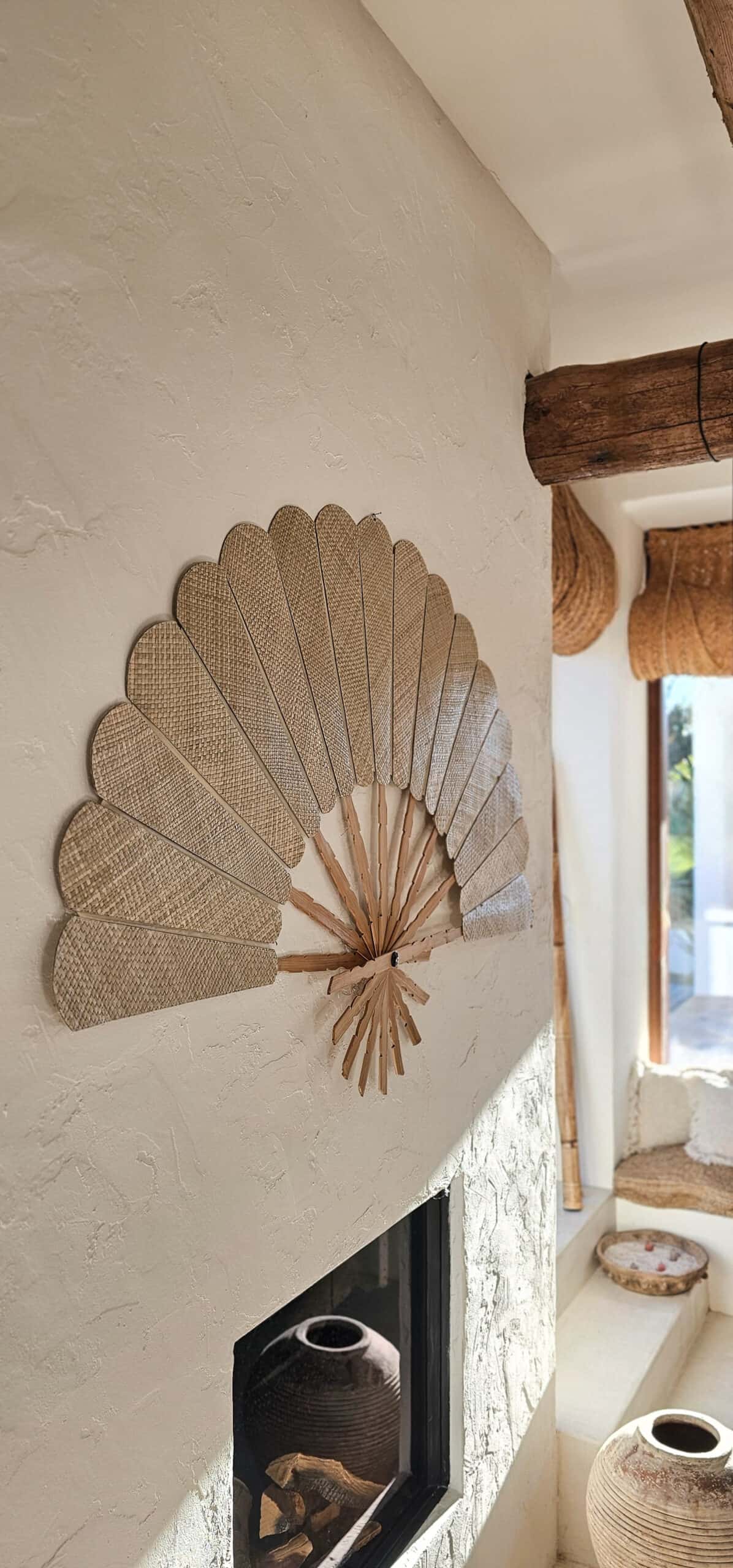 Deze wandwaaier uit Bali is geheel gemaakt van bamboe. Het is geïnspireerd op de traditionele Balinese waaiers, maar bedoeld als pure wanddecoratie. De waaier kan wel ingeklapt worden maar dit is puur voor het transporteren. Wil je een mooie eyecatcher in bali vibe dan is deze waaier een mooie sfeervolle aanvulling in jouw interieur.