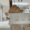 Deze lamp is gemaakt van bananenblad en daardoor heel stevig. Mooi grof gevlochten en licht van kleur.