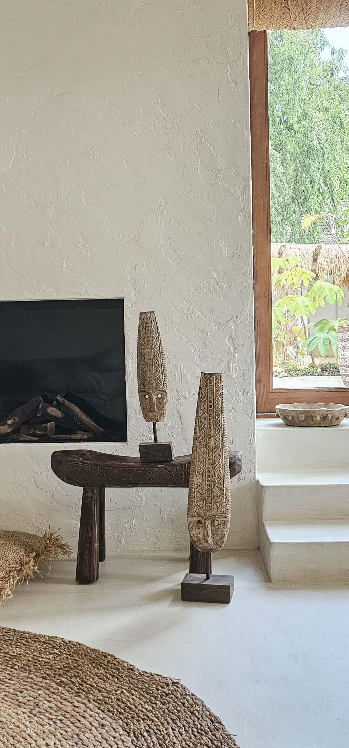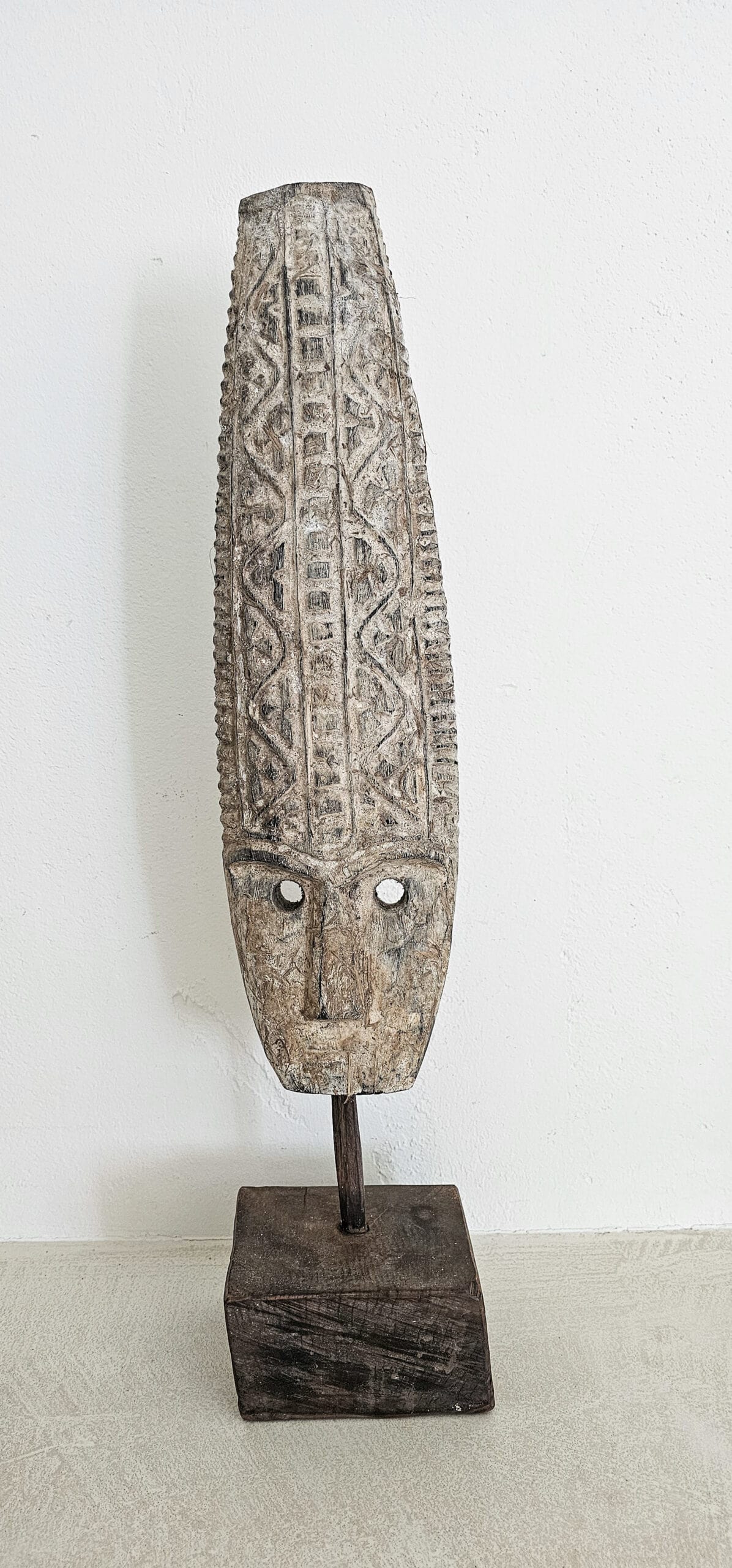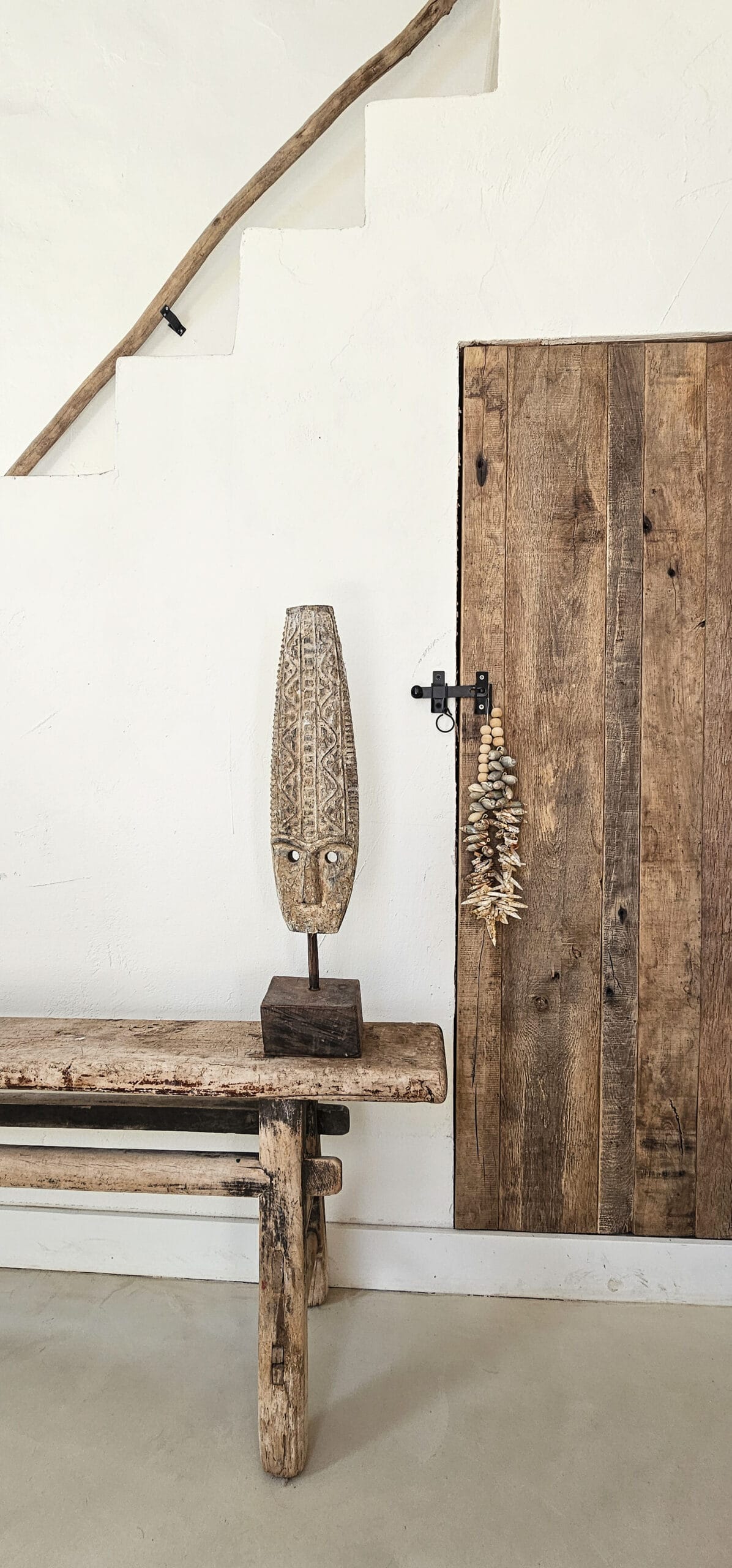 Een elegant en eenvoudig handgemaakt beeldje met verfijnde gecarved hoofdtooi die doet denken aan ceremoniële hoeden van balinese priesters of dansers. Dit ambachtelijke kunstwerk straalt authenticiteit en vakmanschap uit, waarbij traditionele Balinese snijtechnieken worden gecombineerd met een minimalistisch ontwerp. De subtiele details en natuurlijke uitstraling maken het een tijdloos decoratief stuk dat harmonie brengt in elke ruimte