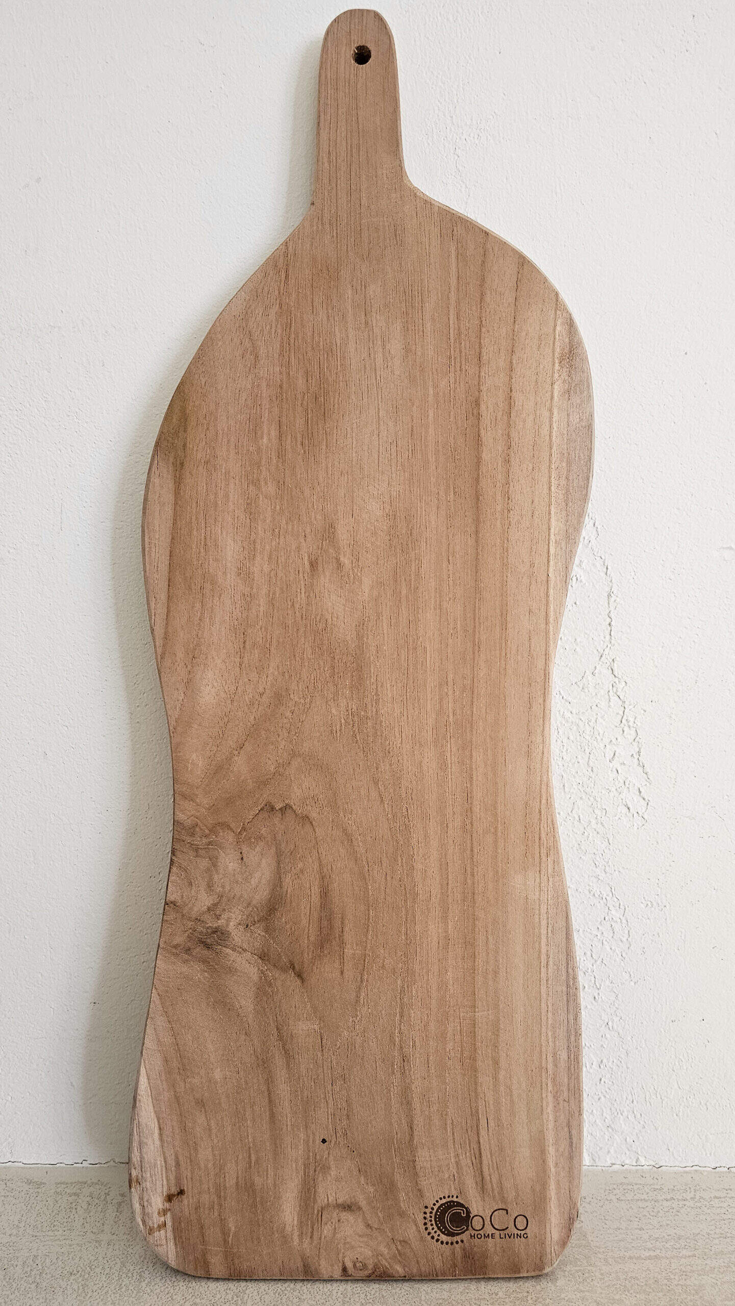 Breng sfeer en authenticiteit naar tafel met onze karaktervolle brood en borrelplanken van Coco Homeliving. Gemaakt van teakhout wat een mooie warme kleur geeft. Ambacht en eenvoud. Mooie afgeronde hoeken met een handvat voorzien van een ophangoog dus ook mooi op te hangen als sfeerobject in de keuken.