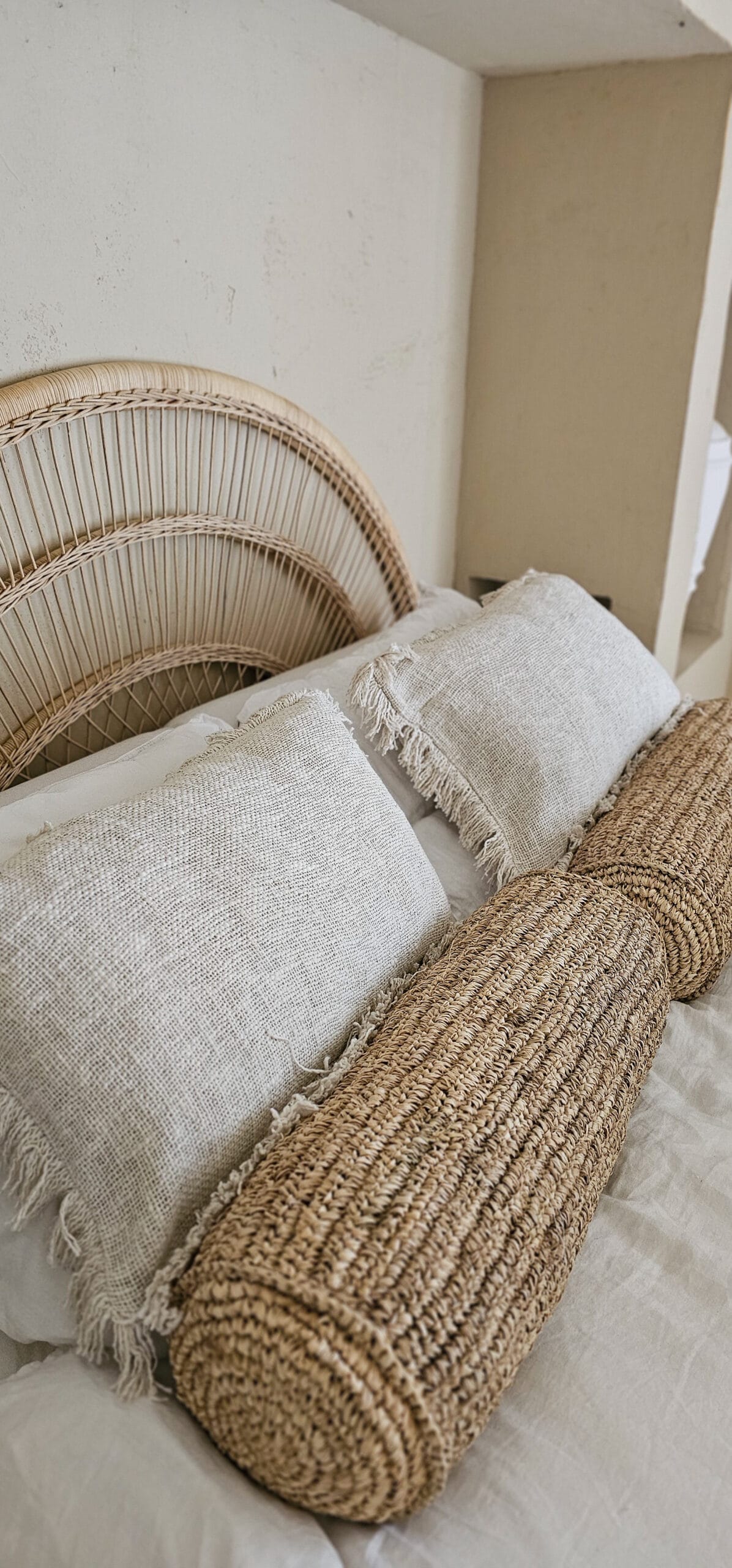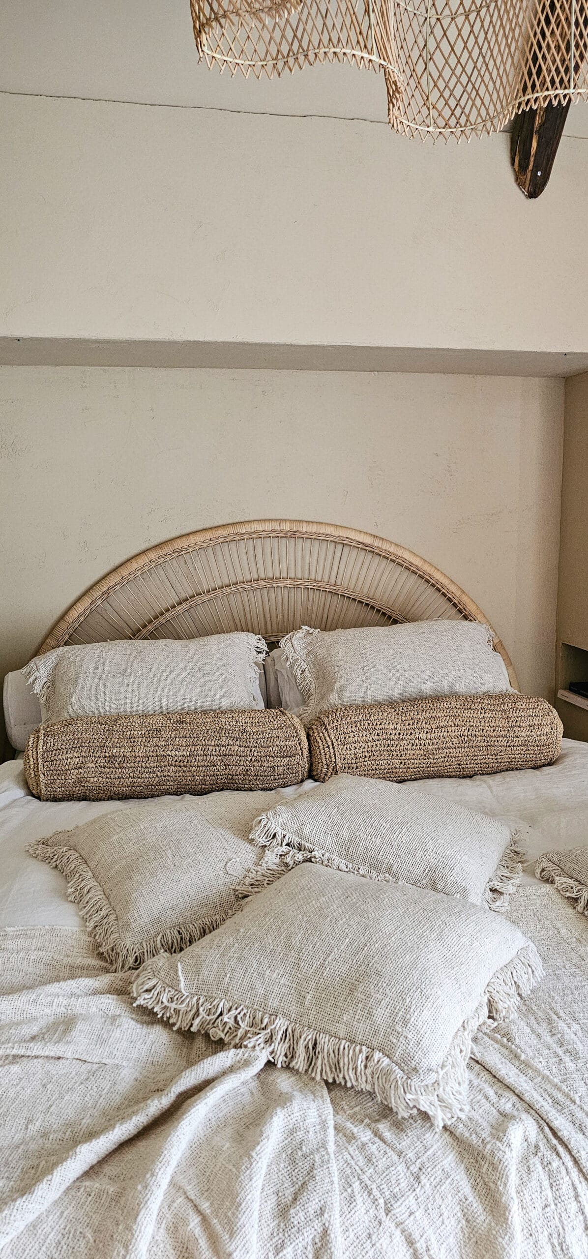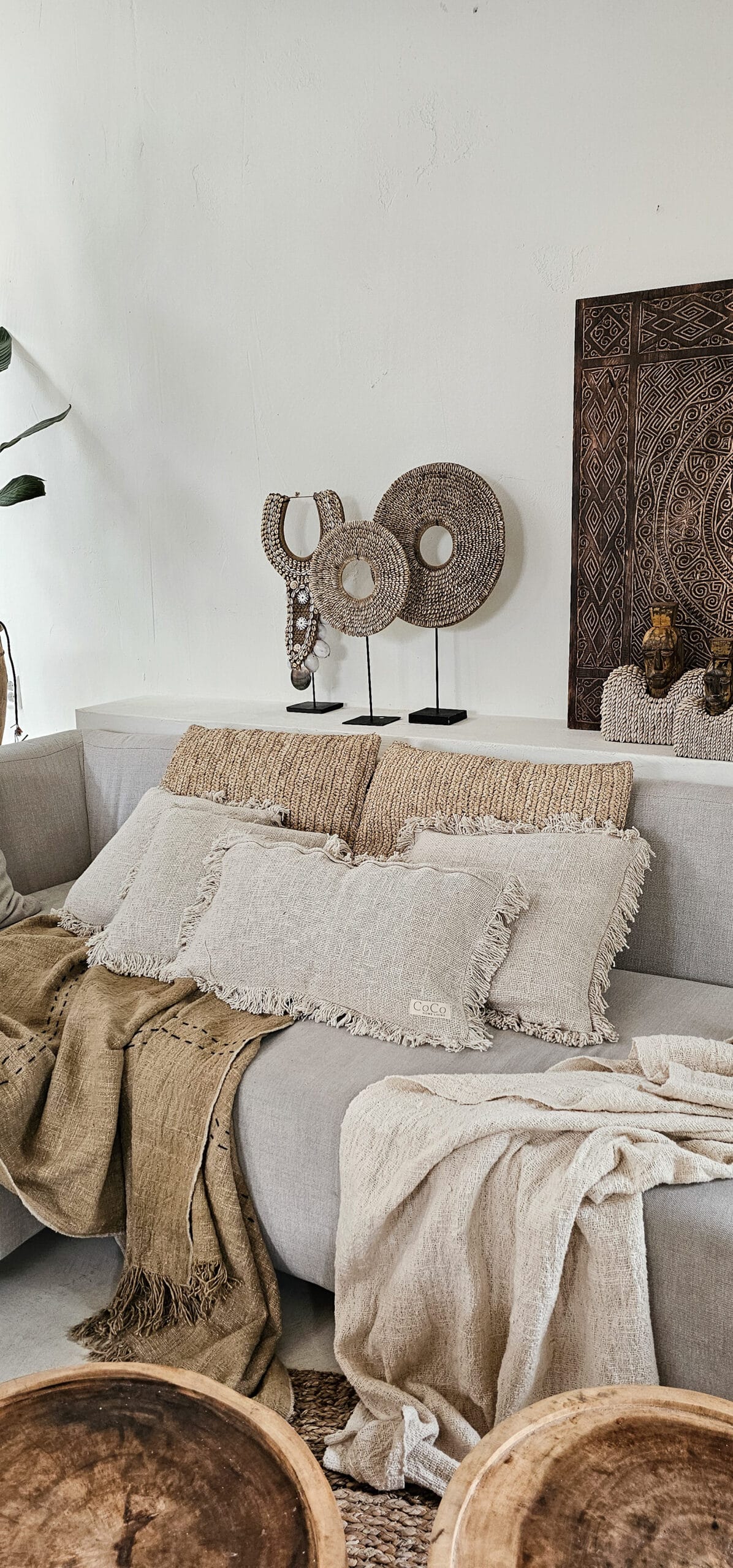 Coco Homeliving Linnen kussen met franjes ecru 35x60cm