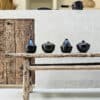 De coco pottery producten zijn handgemaakt en dus organisch qua vorm wat een warme sfeer creeert in de keuken en op tafel.