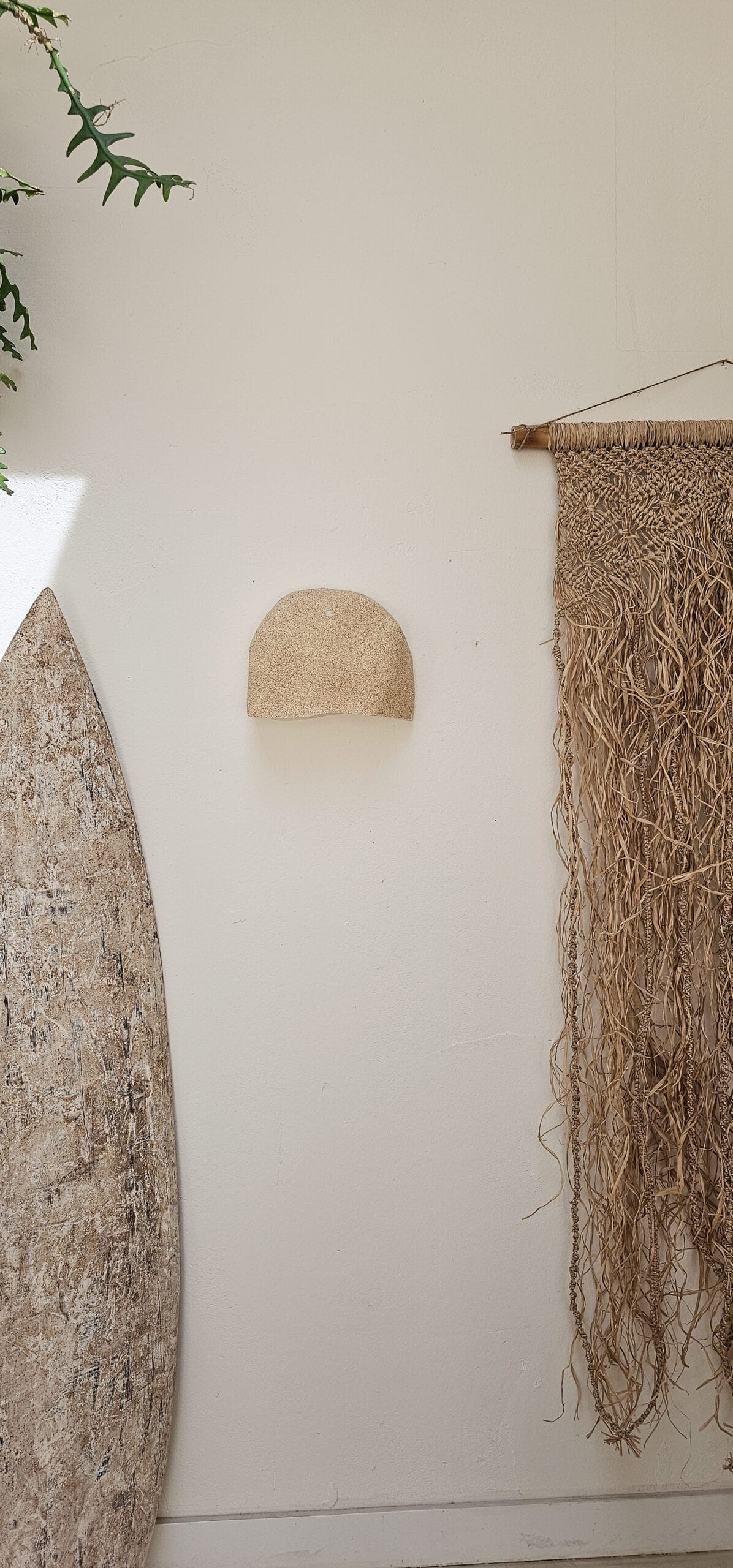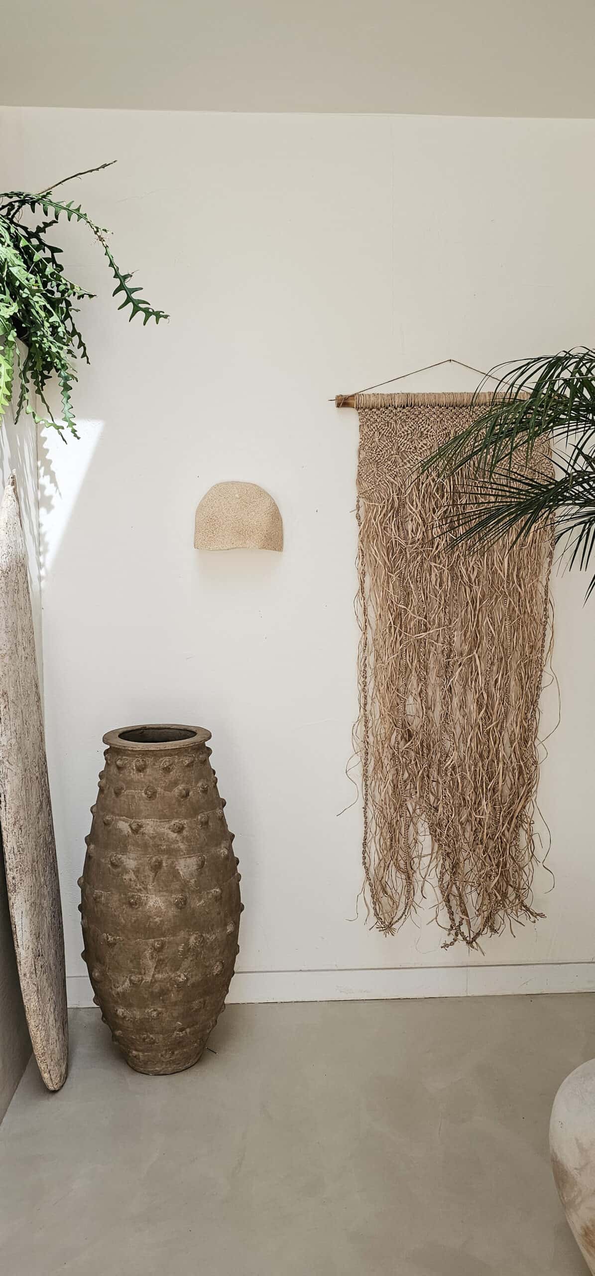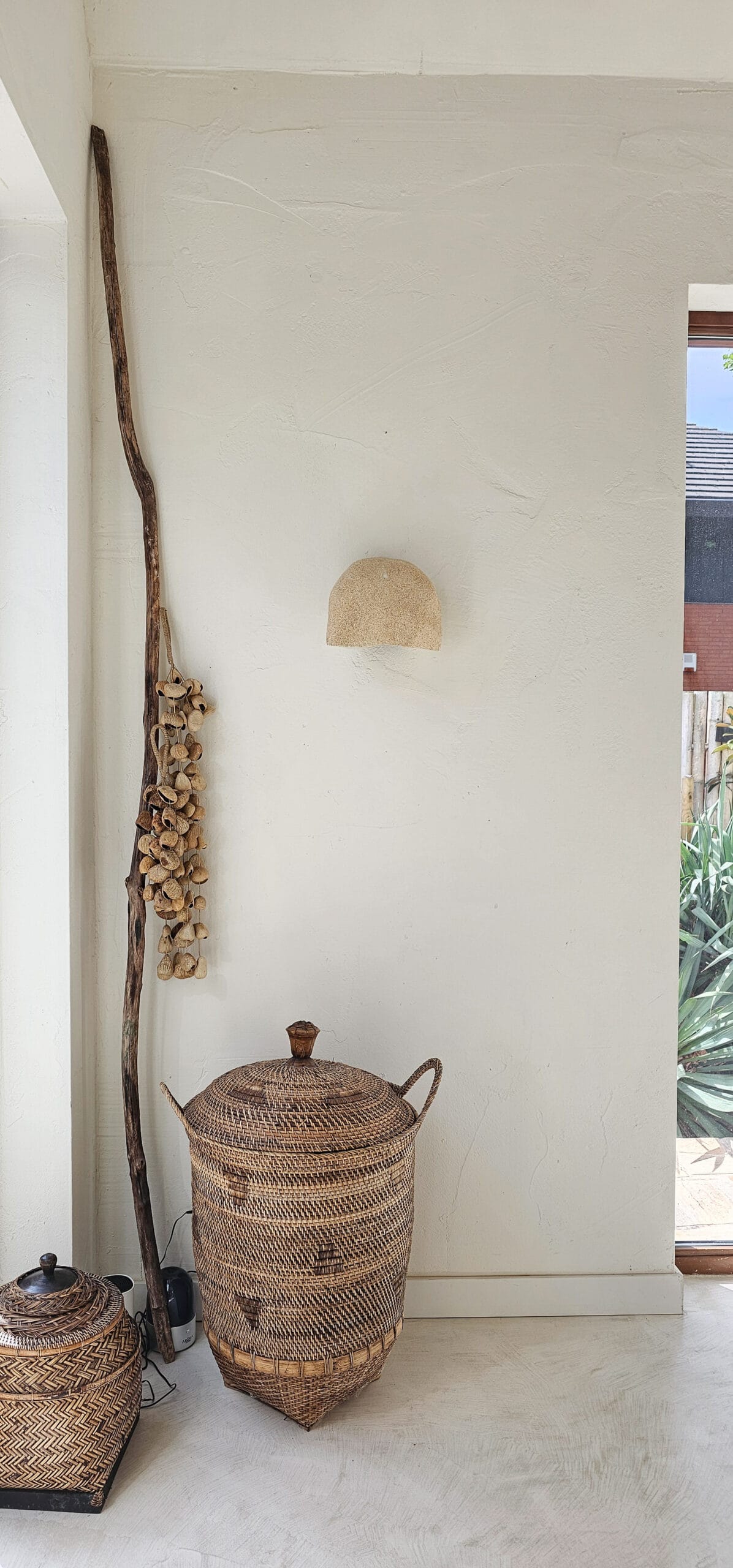 Breng een vleugje tropische verfijning in je interieur met deze handgemaakte wandlamp uit Bali. Vervaardigd uit duurzaam fibercement wat gezandstraald is voor een meer natuurlijke uitstraling. Deze lamp combineert een robuuste structuur met een verfijnde esthetiek. Een golvende oppervlak wat een serene, organische textuur toevoegt aan elke ruimte.