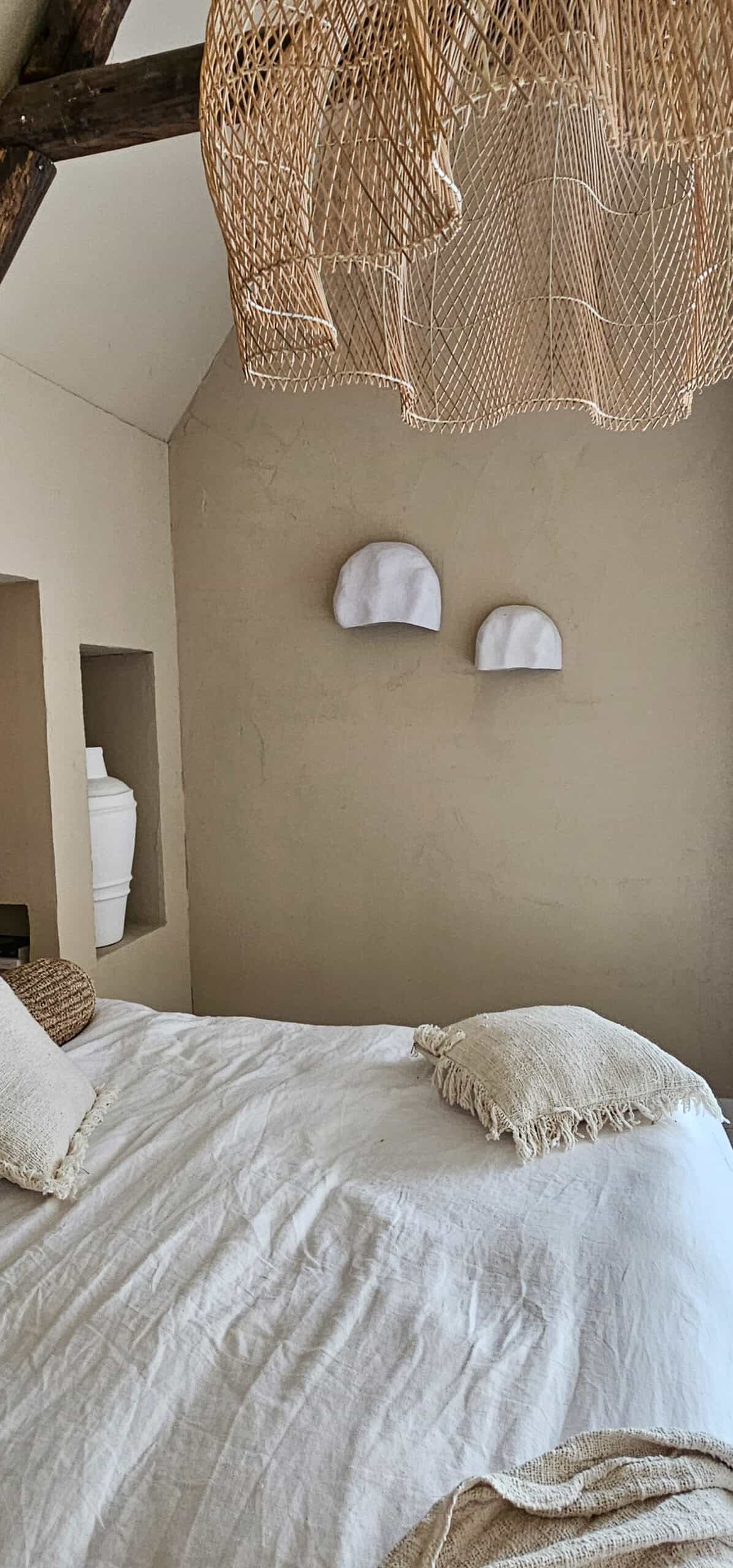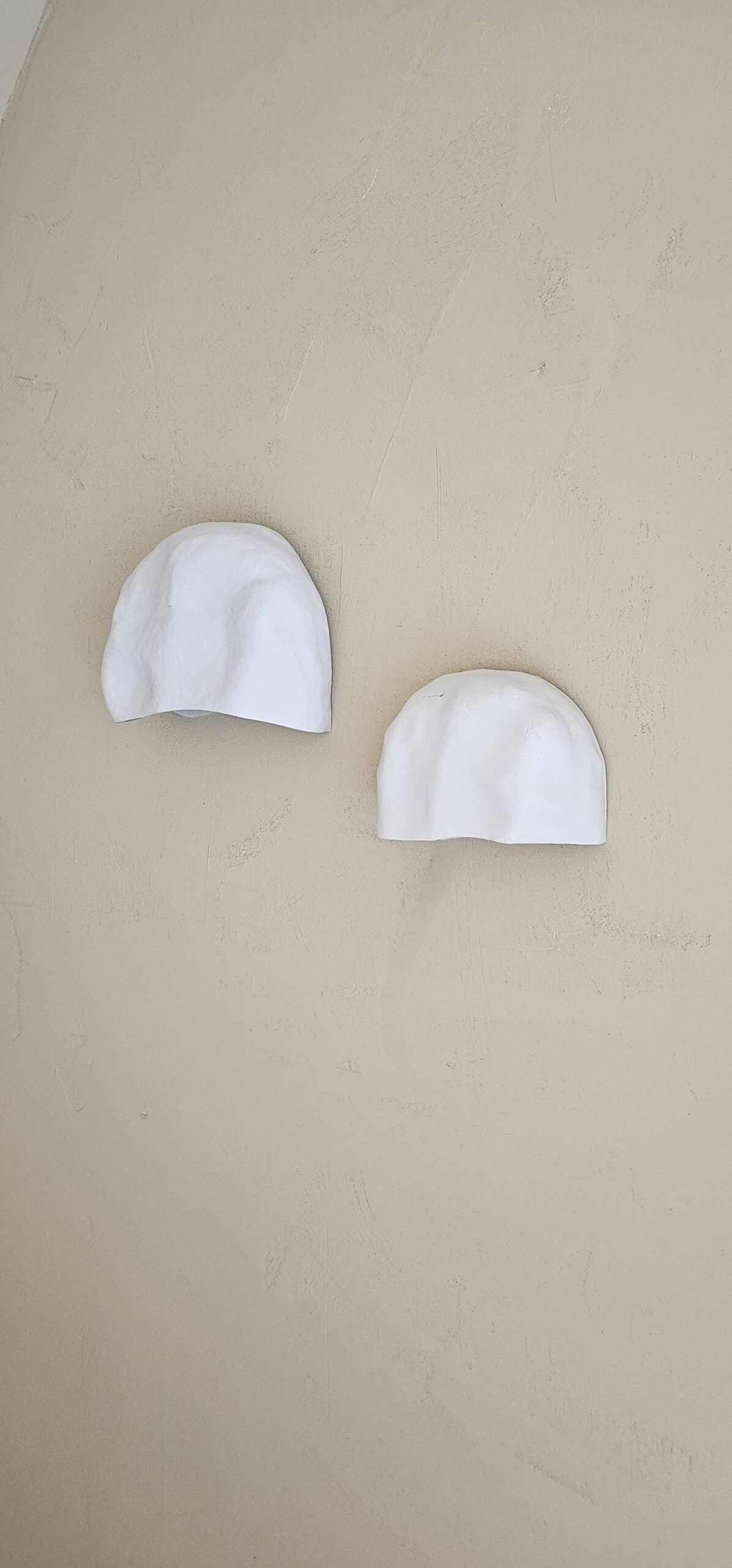 Breng een vleugje tropische verfijning in je interieur met deze handgemaakte wandlamp uit Bali. Vervaardigd uit duurzaam fibercement, combineert deze lamp een robuuste structuur met een verfijnde esthetiek. Het witte, golvende oppervlak  voegt een serene, organische textuur toe aan elke ruimte.