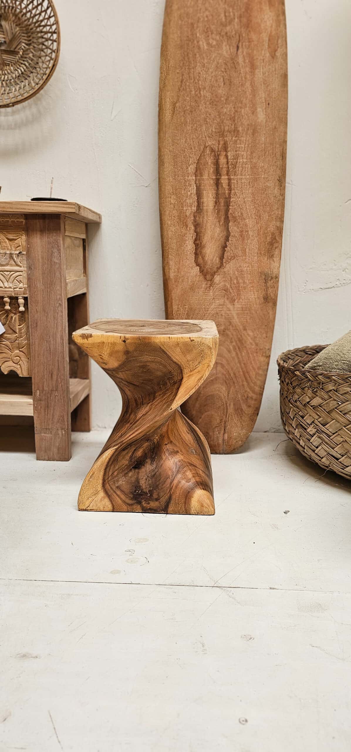 Deze bijzettafel wil je! Prachtige sfeer creëer je met dit tafeltje wat je natuurlijk ook als kruk kan gebruiken. Deze heeft een wat moderner uiterlijk met de vierkante bovenzijde en een twist. Ze zijn handgemaakt en kunnen dus iets afwijken van de foto. Dit maakt ze natuurlijk wel uniek!