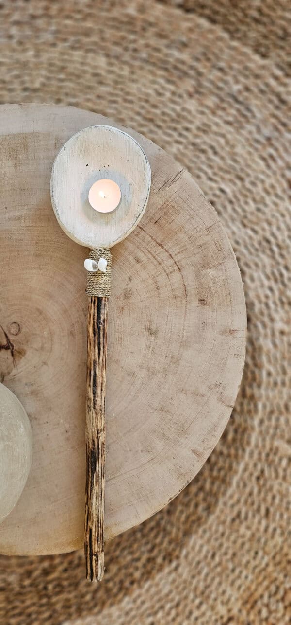 De lepel kan als een rustiek en charmant middelpunt op een tafel, plank of vensterbank. Perfect om een waxinelichtje op te plaatsen wat een gezellig ambiance toevoegt aan elke ruimte.