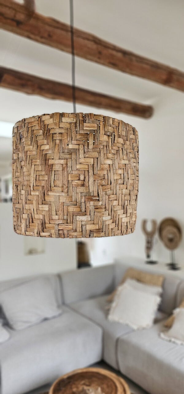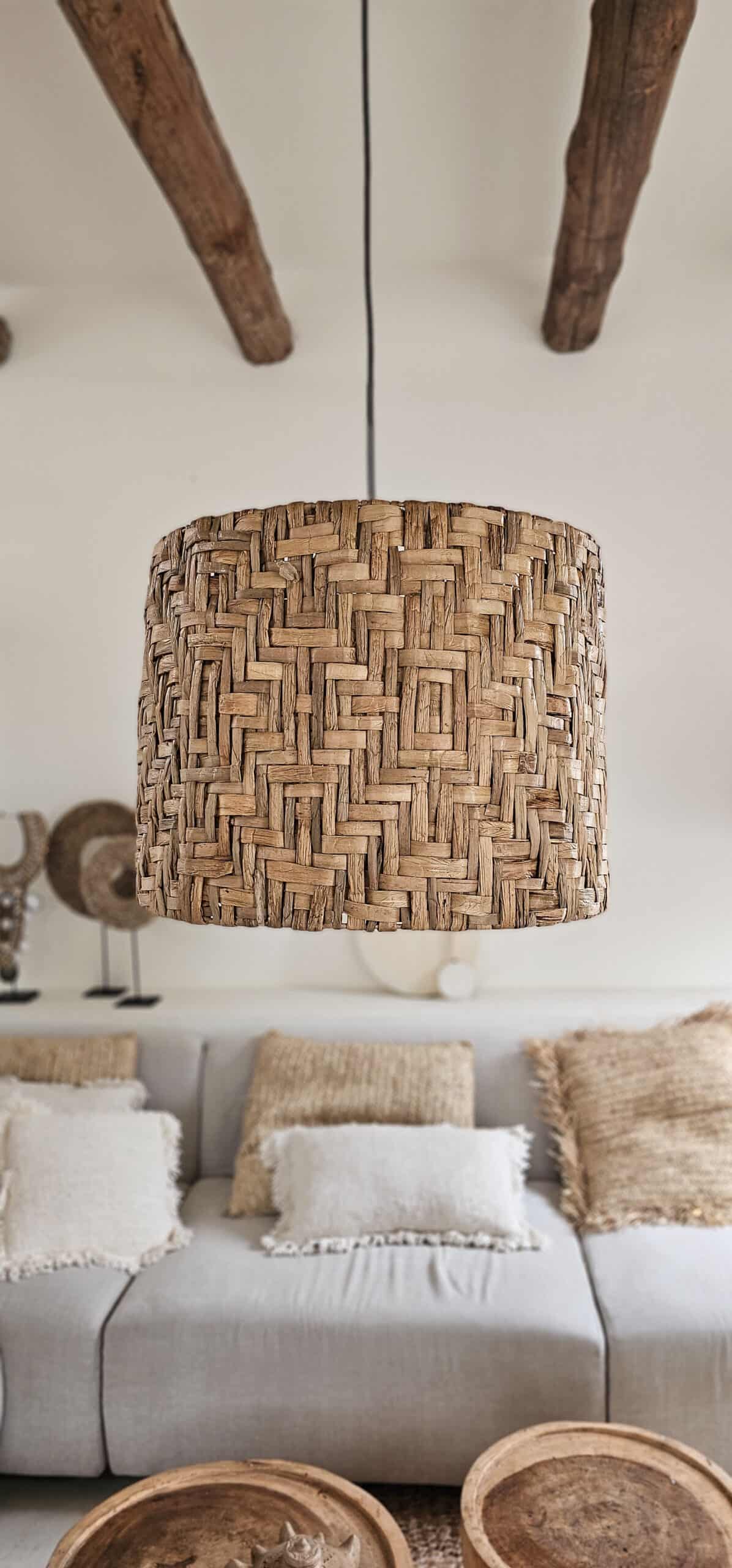 Een prachtige hanglamp uit Java, gemaakt van waterhyacint en vormgegeven als een klassieke lampenkap. Het natuurlijke materiaal geeft de lamp een warme en organische uitstraling, perfect voor een sfeervol en stijlvol interieur. De geweven structuur brengt een rustieke charme in elke ruimte, van woonkamers tot eetkamers. Dankzij het duurzame en lichte materiaal is de lamp eenvoudig op te hangen en een unieke toevoeging aan diverse interieurstijlen.