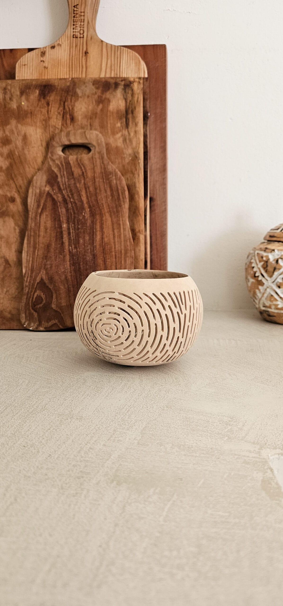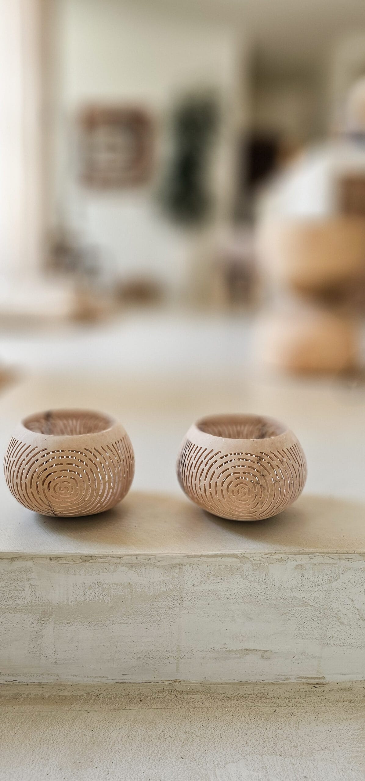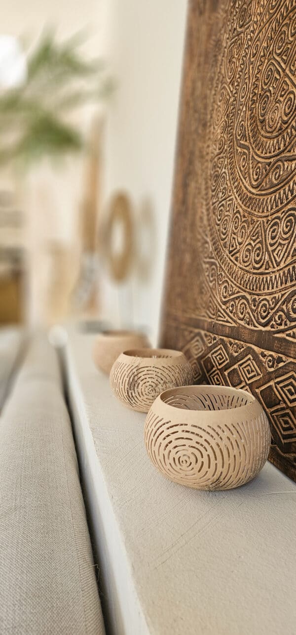 Een windlicht gemaakt van een jonge kokosnoot en heeft daarom die mooie lichte kleur.