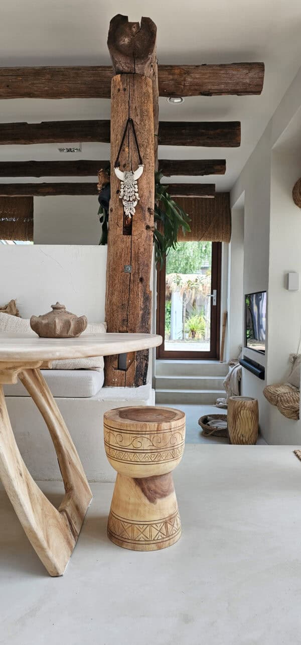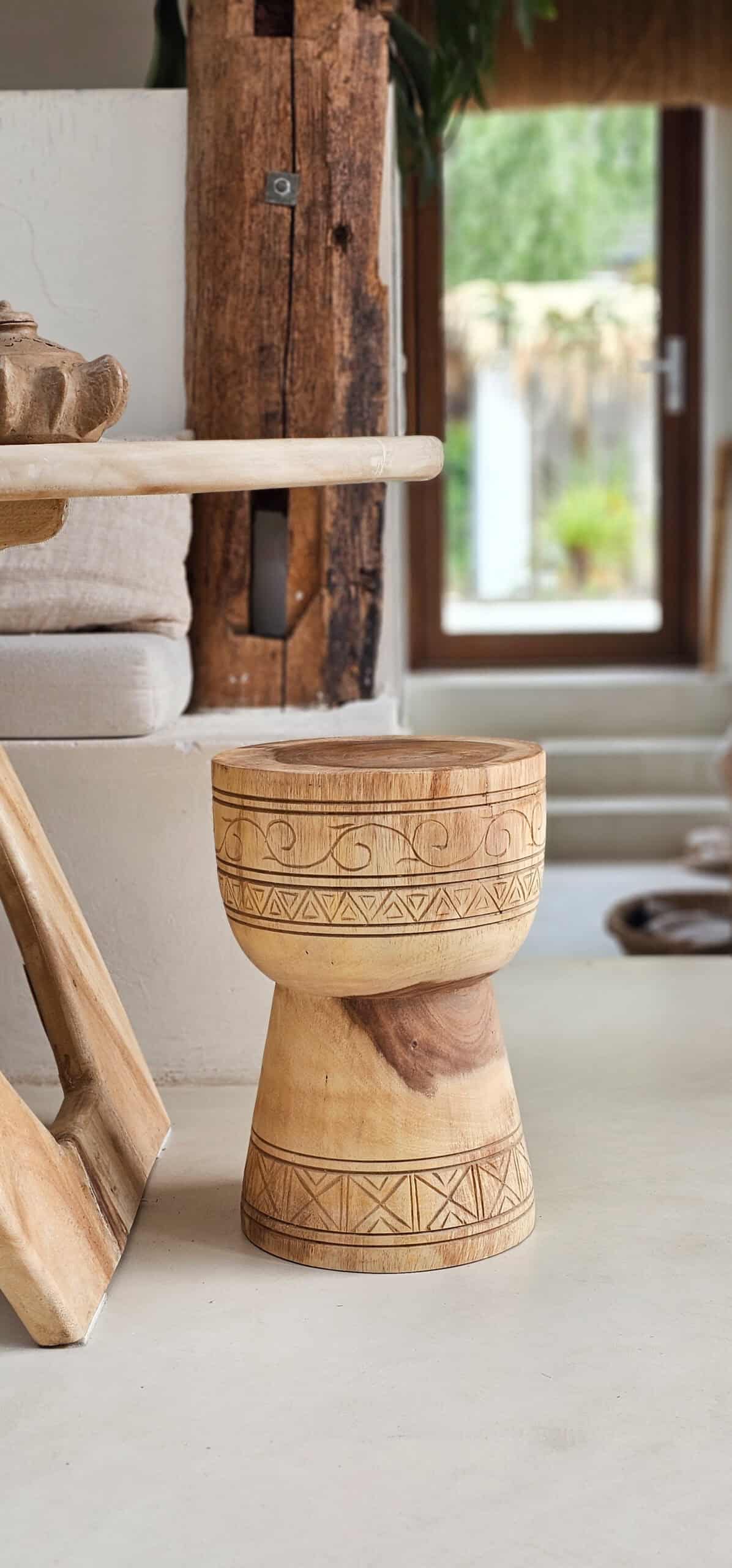 Een mooi bewerkte bijzettafel of kruk met boho carving. Natuurlijk ook hartstikke leuk i.p.v. nachtkastje. Ze zijn handgemaakt en kunnen dus iets afwijken van de foto. Dit maakt ze natuurlijk wel uniek!