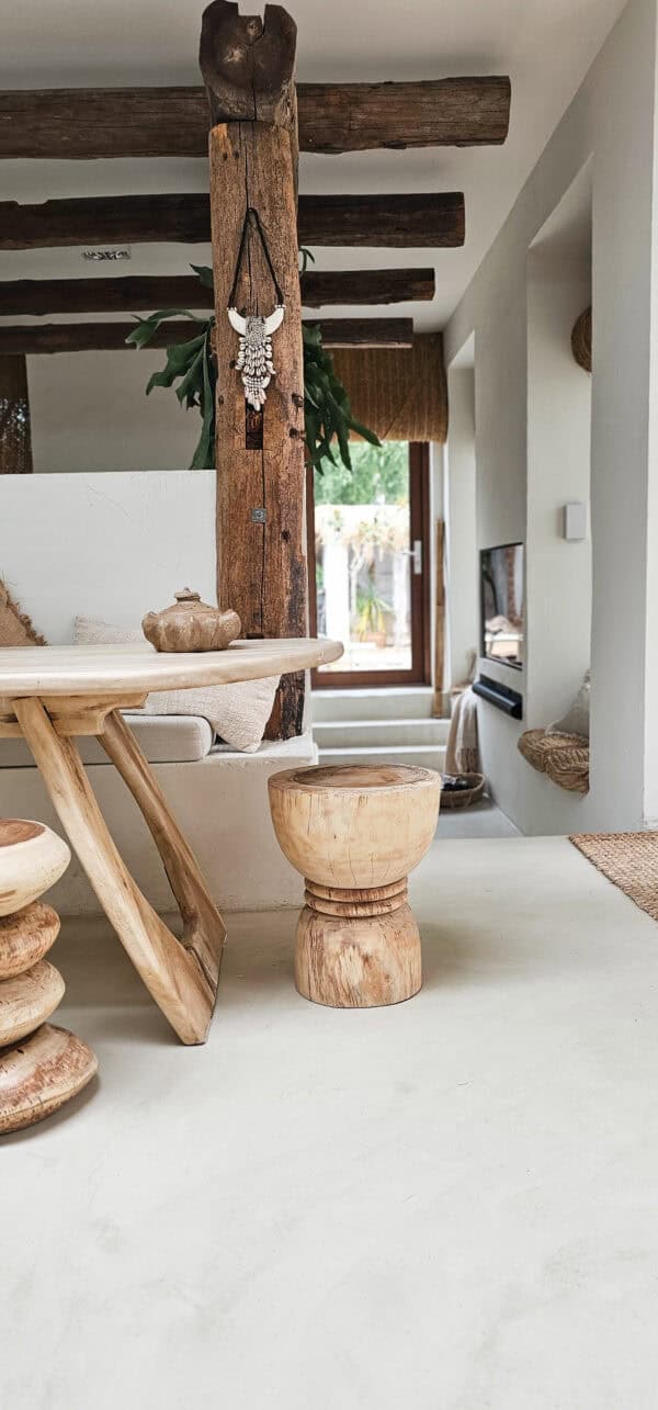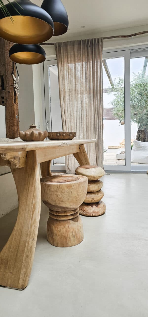 Deze elegante kruk is een ode aan eenvoud en ambacht. Gemaakt van massief hout en met een afwerking die de natuurlijke nerven en textuur volledig tot hun recht laat komen, straalt dit meubelstuk warmte en authenticiteit uit. De vorm is cilindrisch met een subtiele versmalling aan de onderzijde, waardoor het niet alleen stevig oogt maar ook visueel verfijnd is.