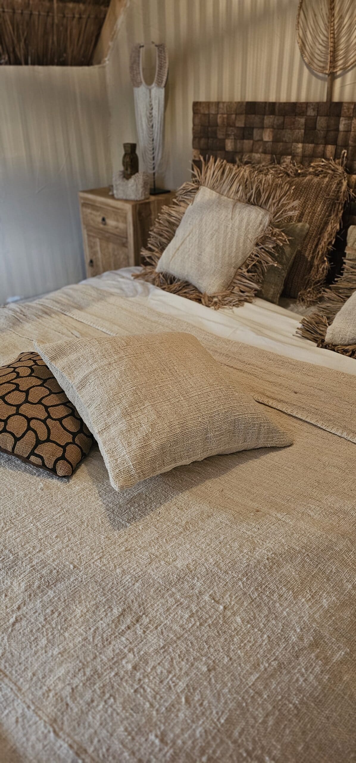 Combineer met de andere linnen kussen in de kleuren olijfgroen en donkerbruin of de vele linnen plaids.