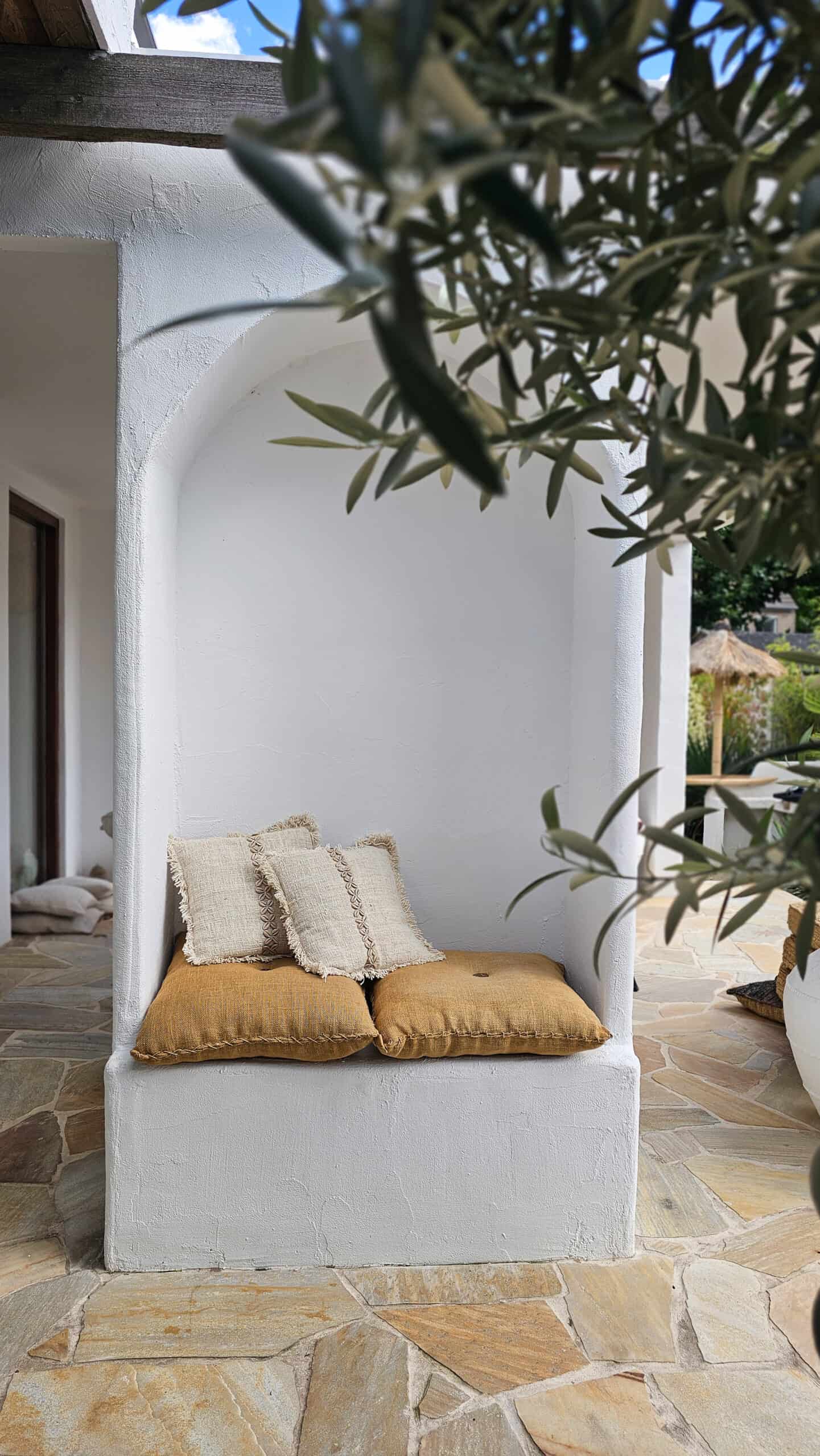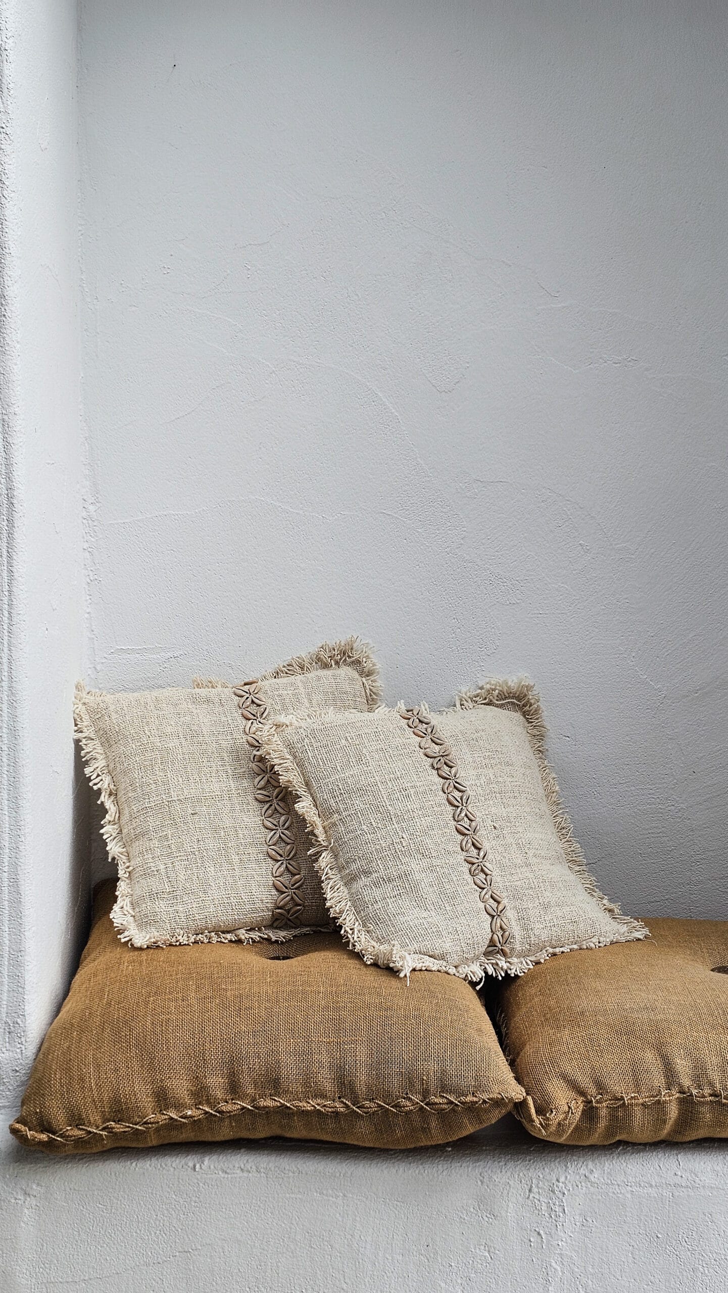 Linnen kussen met kauri schelpjes