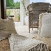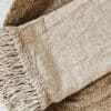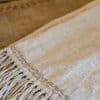 Een prachtig plaid van grof linnen met kaurischelpjes en grove franjes. Heerlijk zomers door de schelpjes en een plaatje om mee te decoreren en heerlijk om onder te liggen.