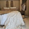 Voor wie van kaurischelpjes houdt is dit een echte musthave. Grof linnen maar voelt zacht aan en is zeer soepel. Ook mooi met de linnen kussens.