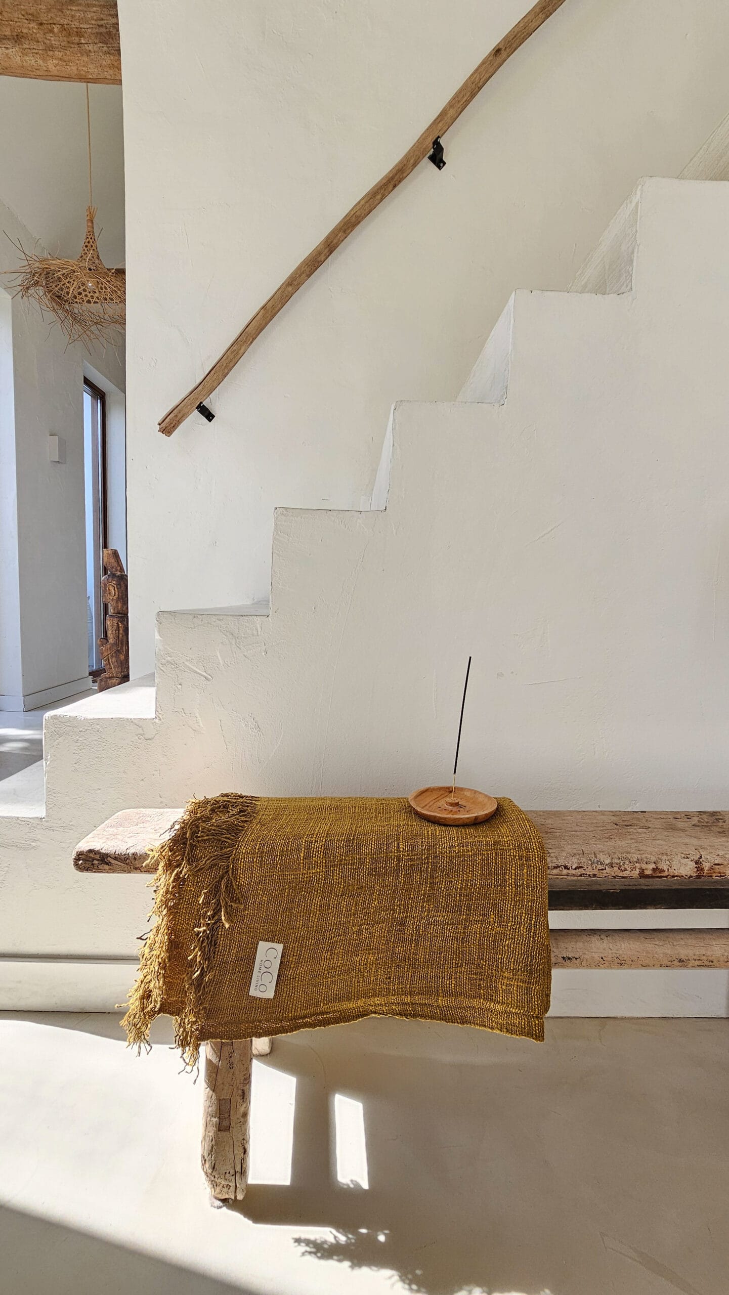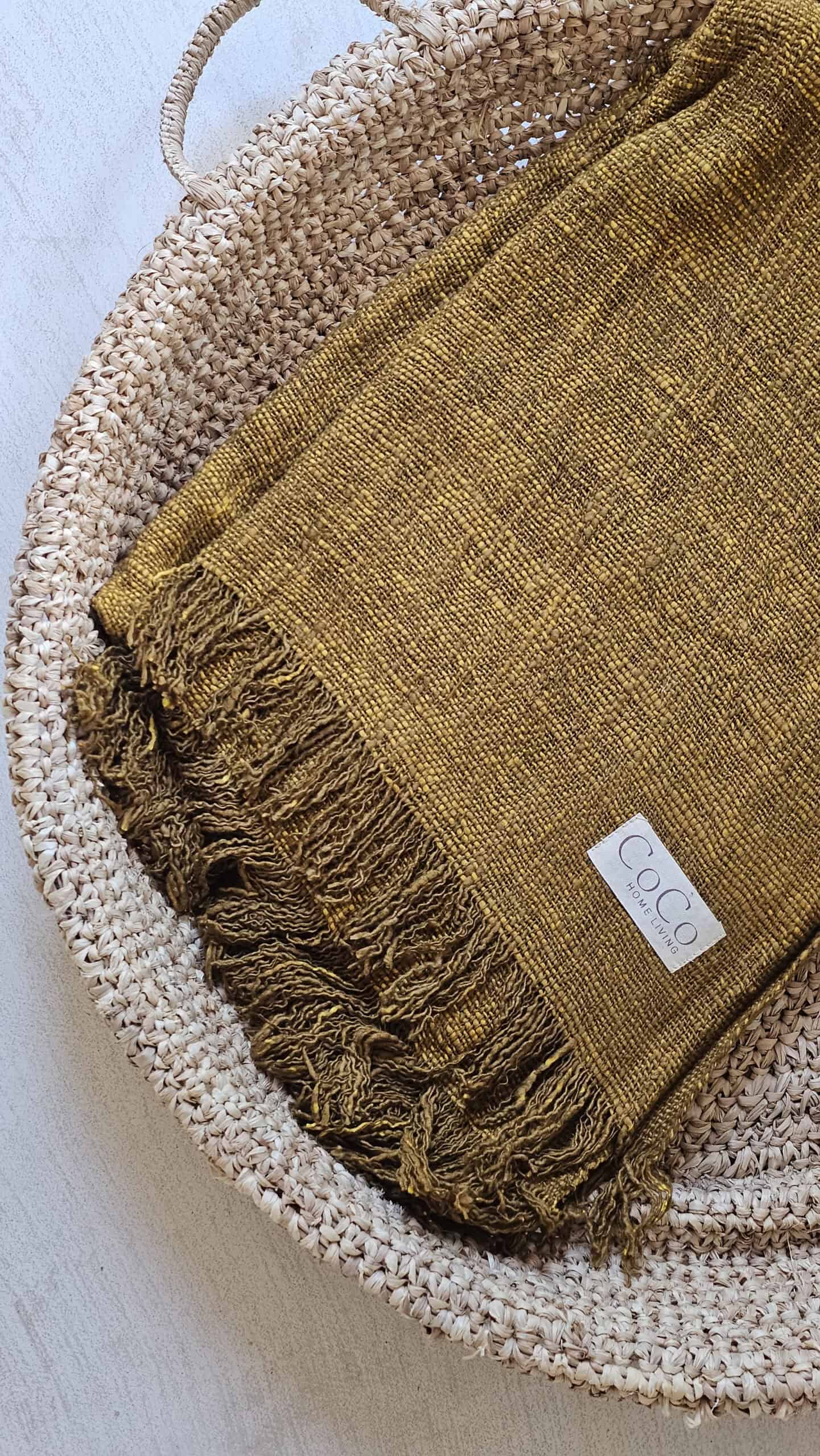 Een prachtig okerbruin linnen plaid met fijne franjes. Een plaatje om mee te decoreren en heerlijk om onder te liggen. Voelt zacht aan en is zeer soepel. Ook mooi te combineren met de andere linnen plaids en kussens.