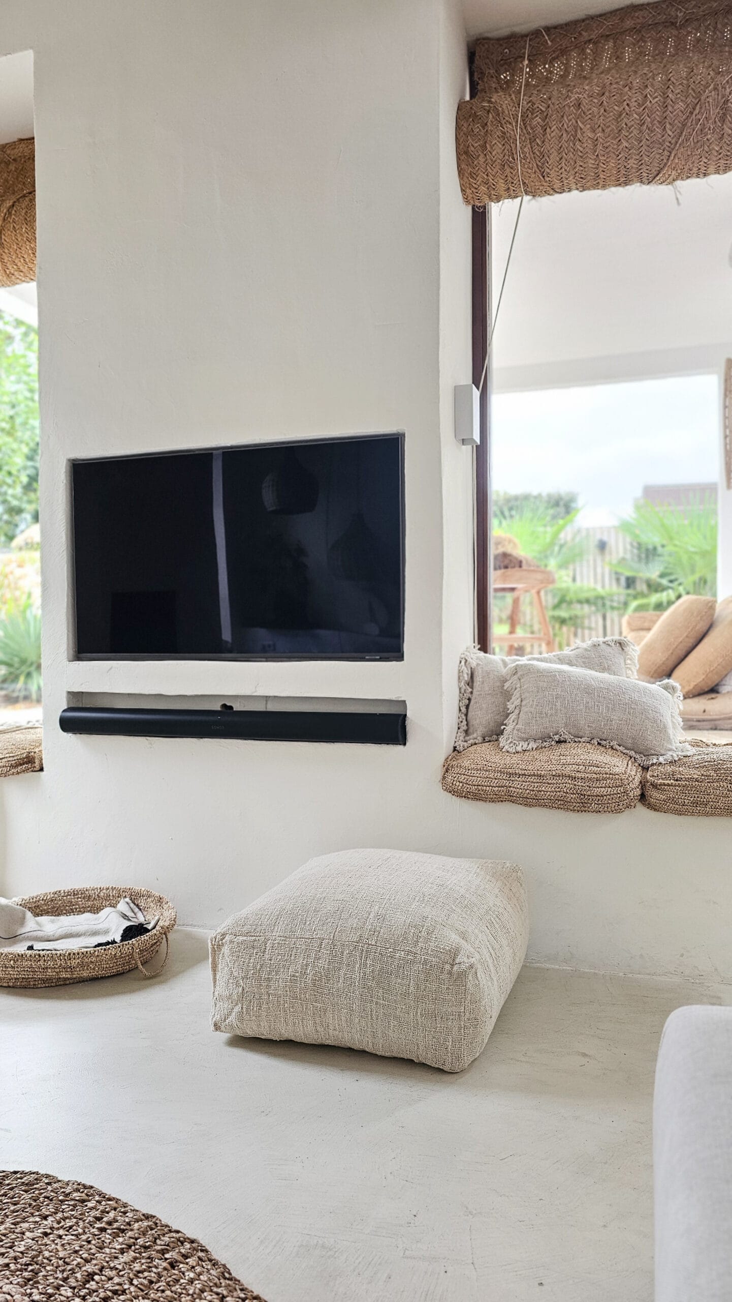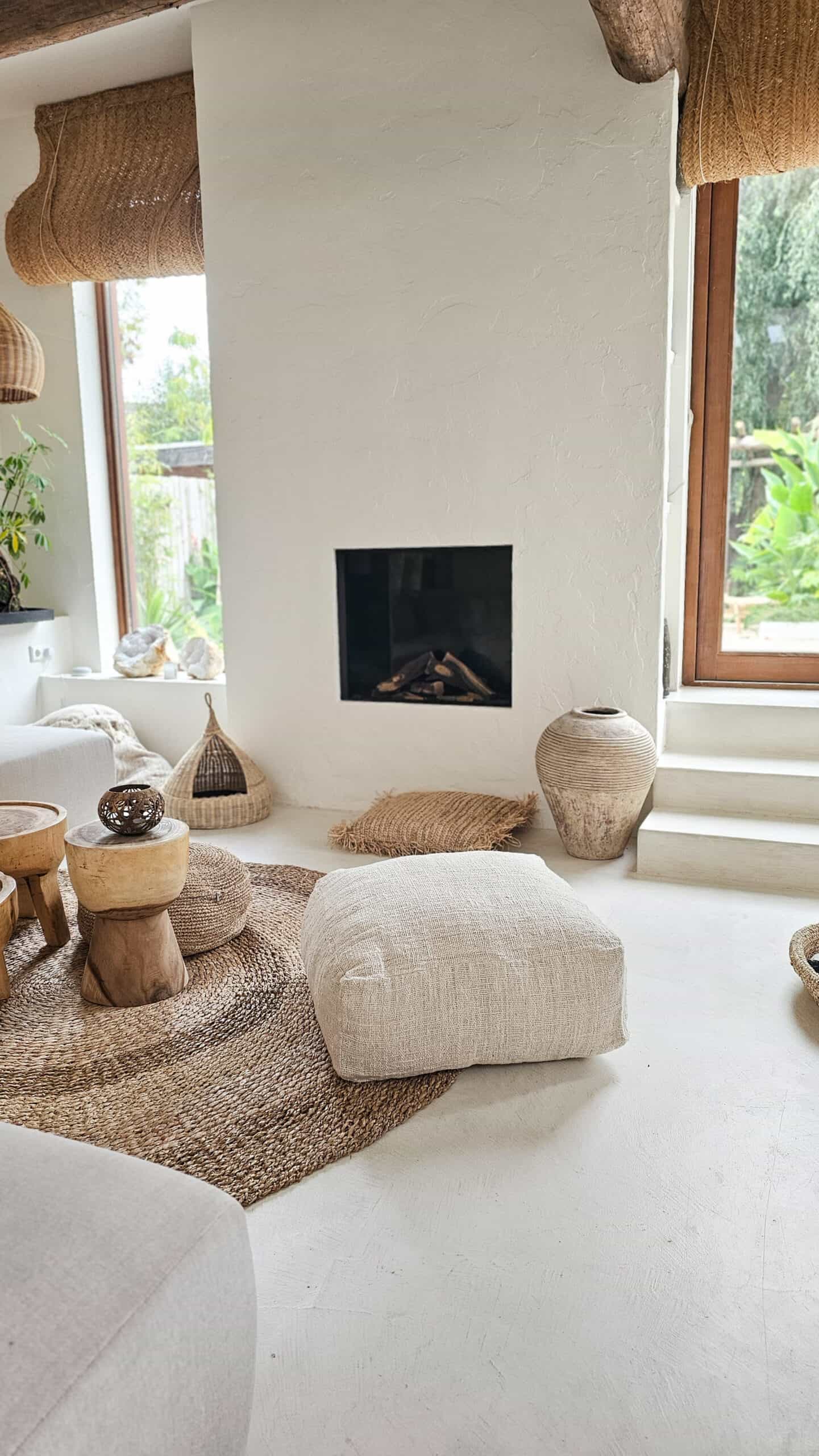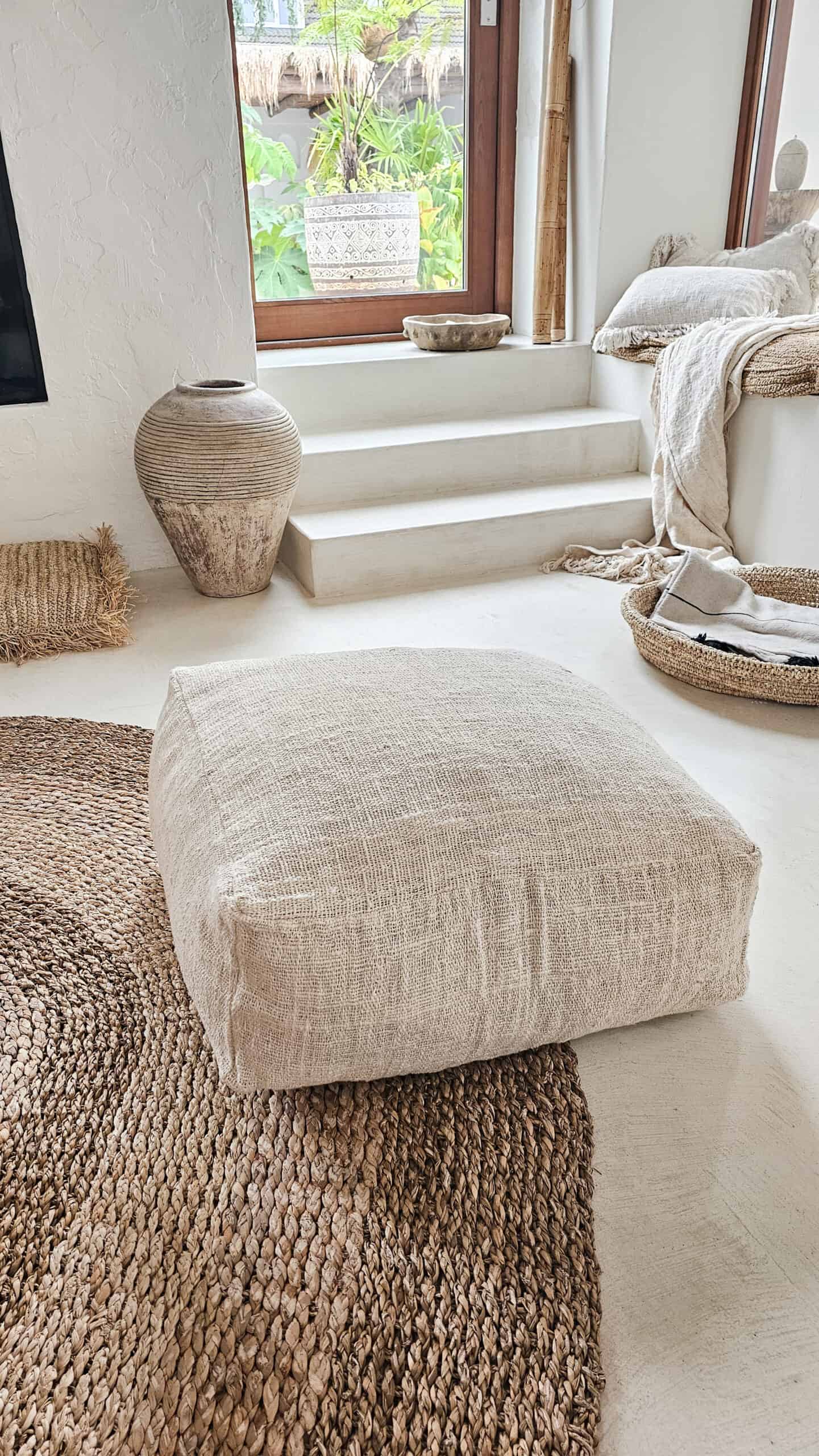 Een prachtige linnen poef! wat een beauty! In de neutrale ecru / roomwitte kleur.