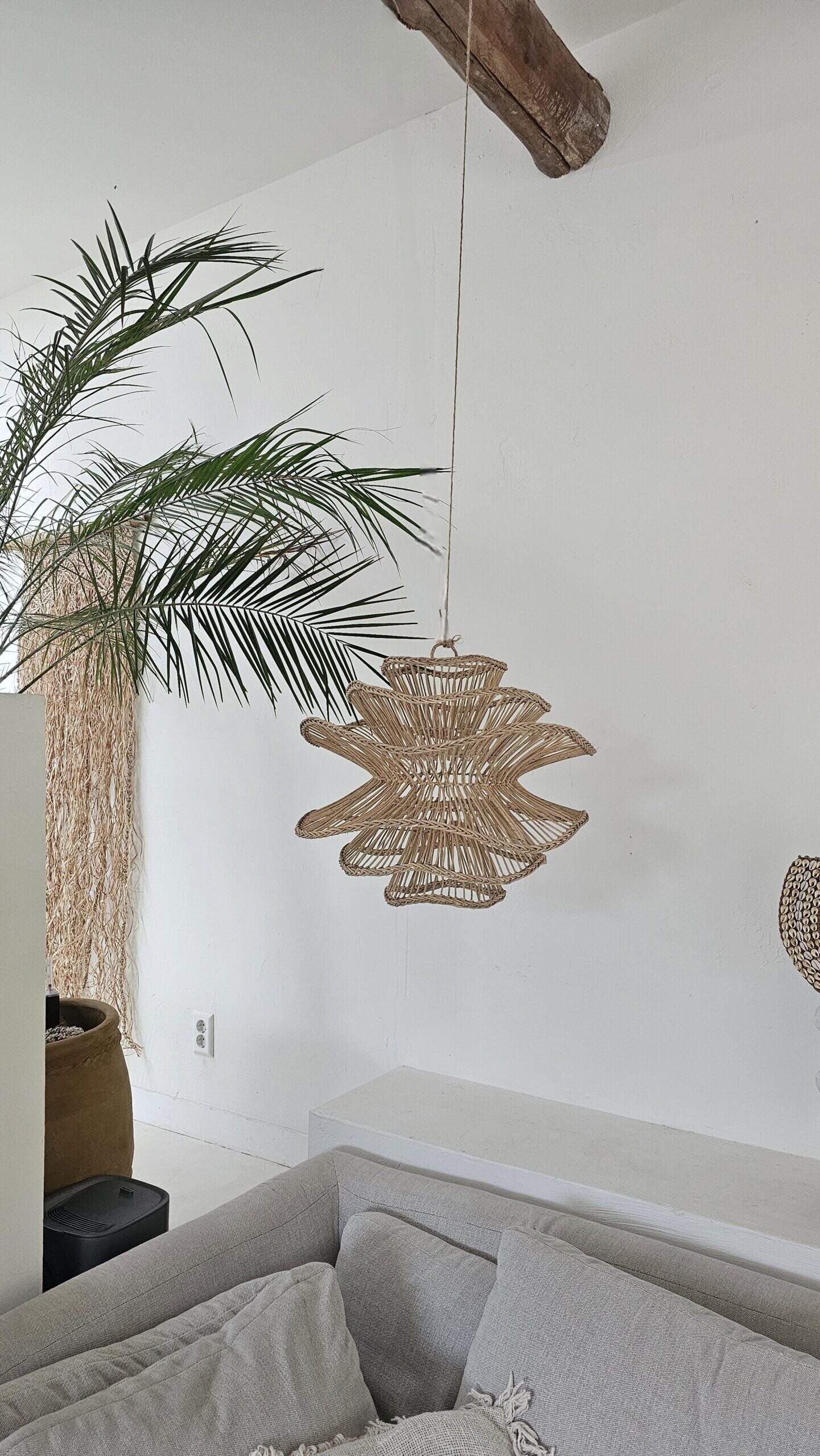 Breng de zon van Bali in huis met deze prachtige rotan hanglamp, met de hand gevlochten door locale ambachtslieden. Elk stuk is uniek.