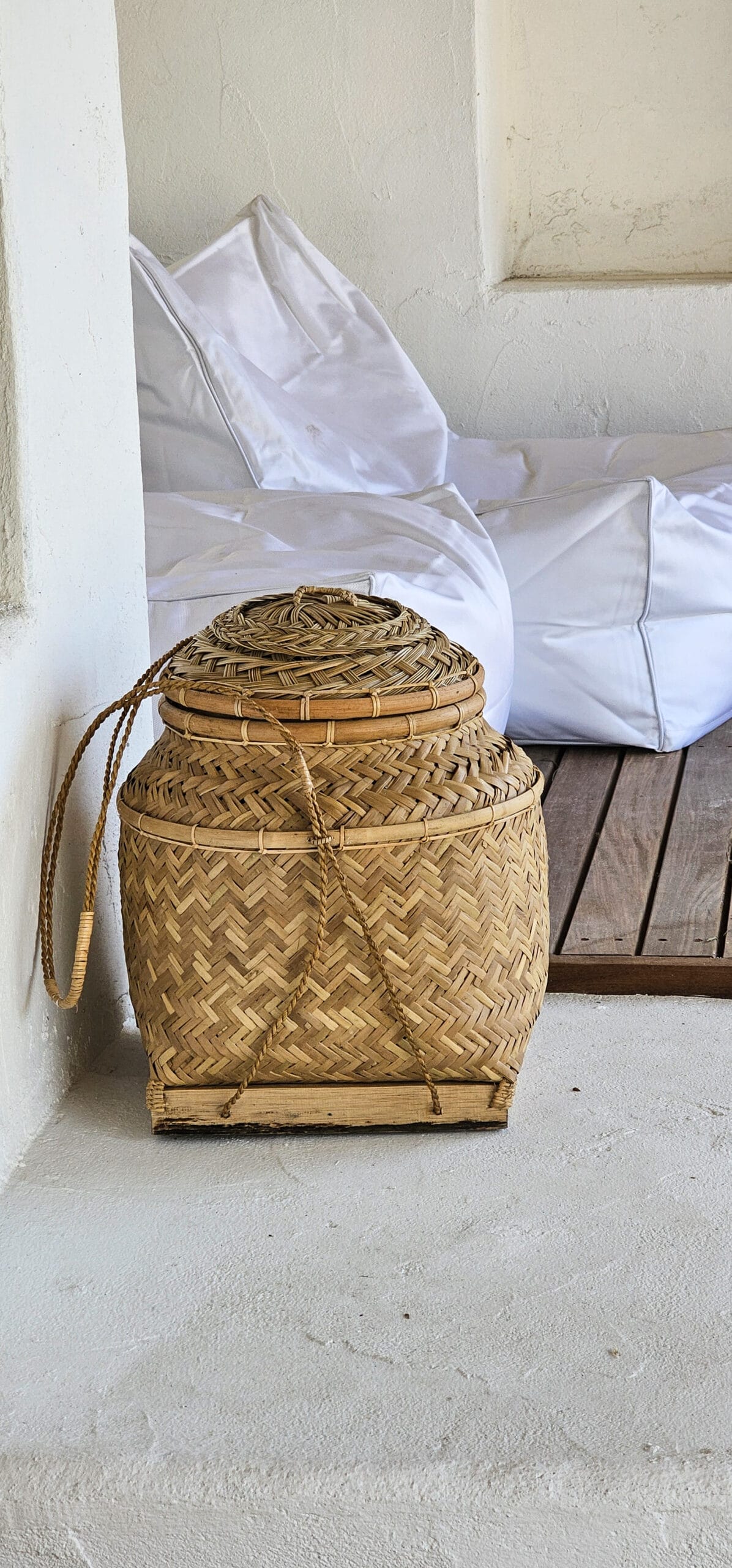 Deze aparte karakteristieke mand combineert traditie en functionaliteit. Deze manden worden oorspronkelijk in Indonesië op het land en vooral in de rijstvelden gebruikt.