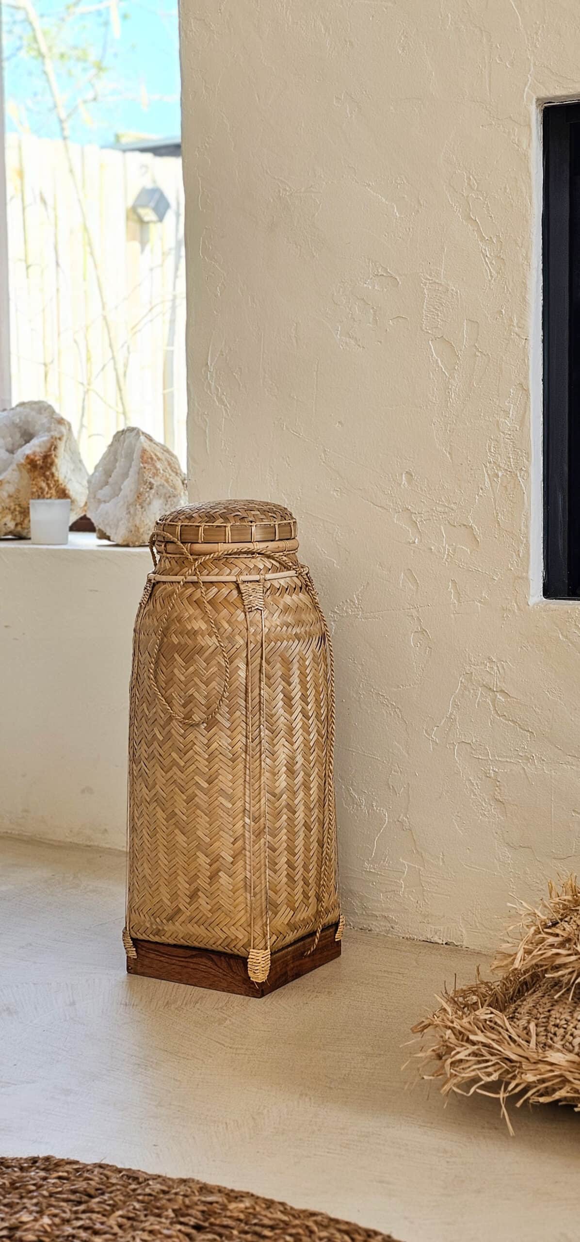 Deze aparte karakteristieke mand combineert traditie en functionaliteit. Deze manden worden oorspronkelijk in Indonesië op het land en vooral in de rijstvelden gebruikt.