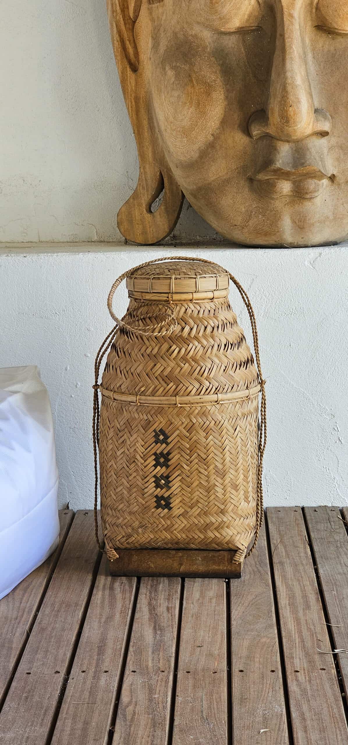 Deze aparte karakteristieke mand combineert traditie en functionaliteit. Deze manden worden oorspronkelijk in Indonesië op het land en vooral in de rijstvelden gebruikt.