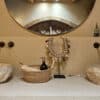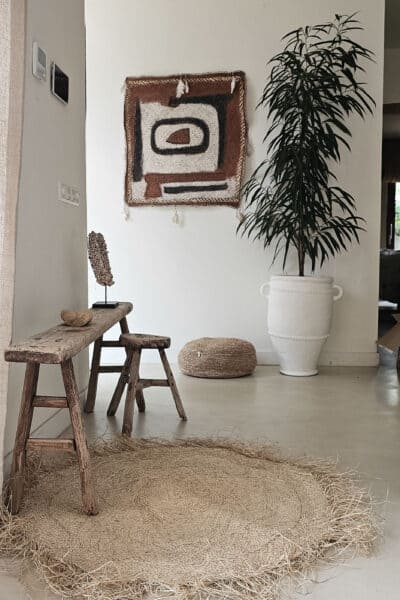 Doordat de schelpen op bruin katoen zijn gemaakt geeft het een oldlook uiterlijk.