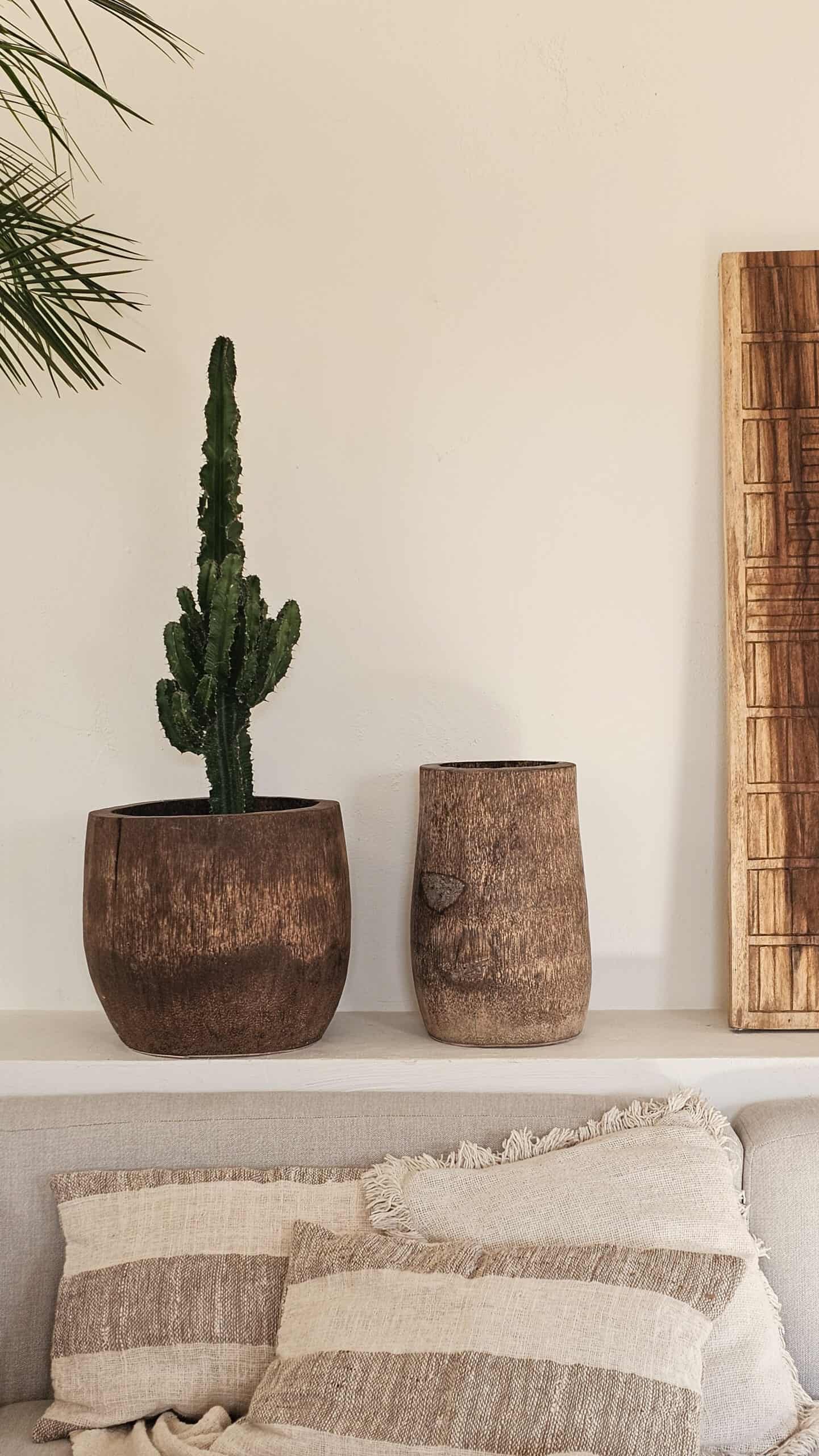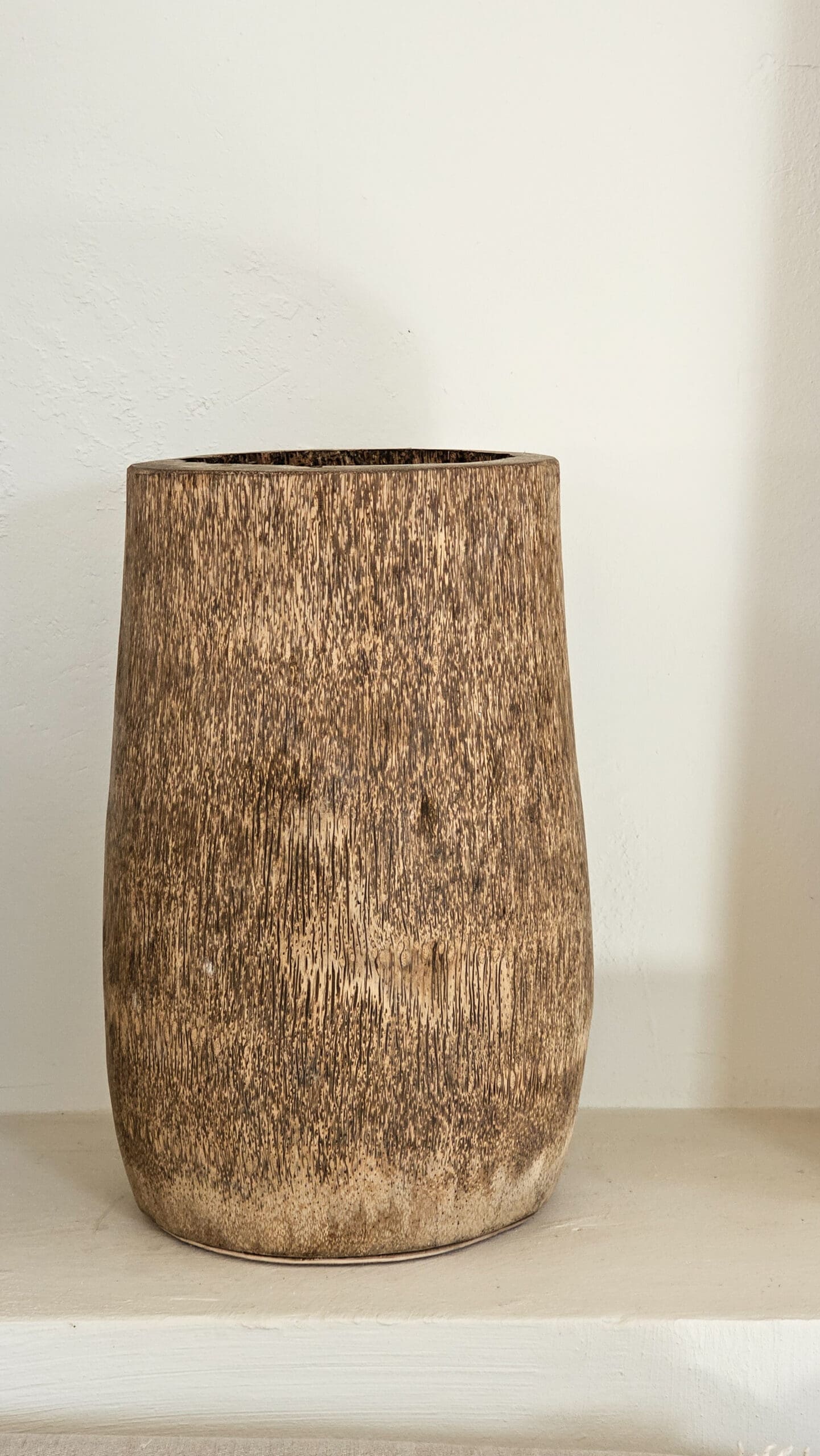De vaas is gemaakt van palmhout en dus niet waterdicht.