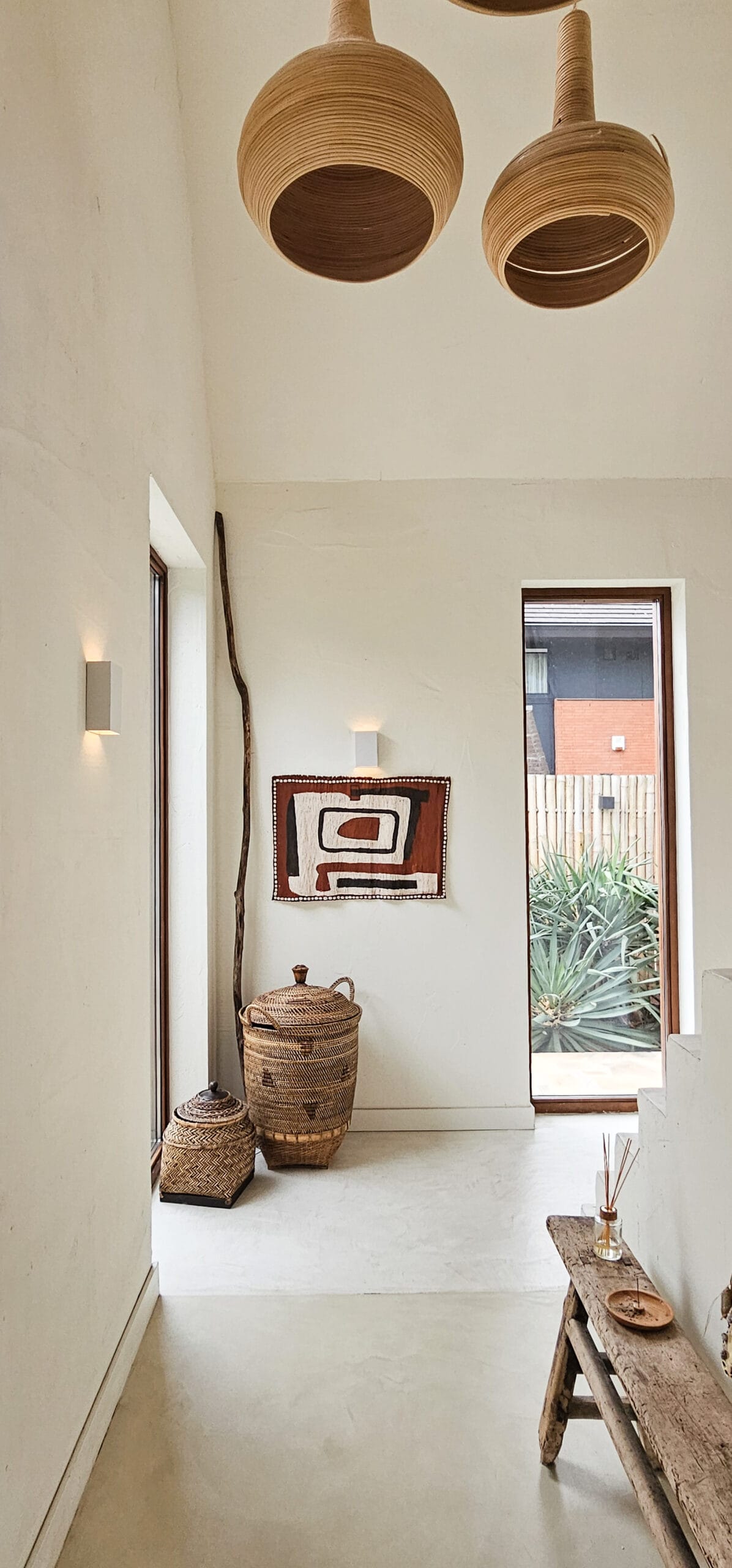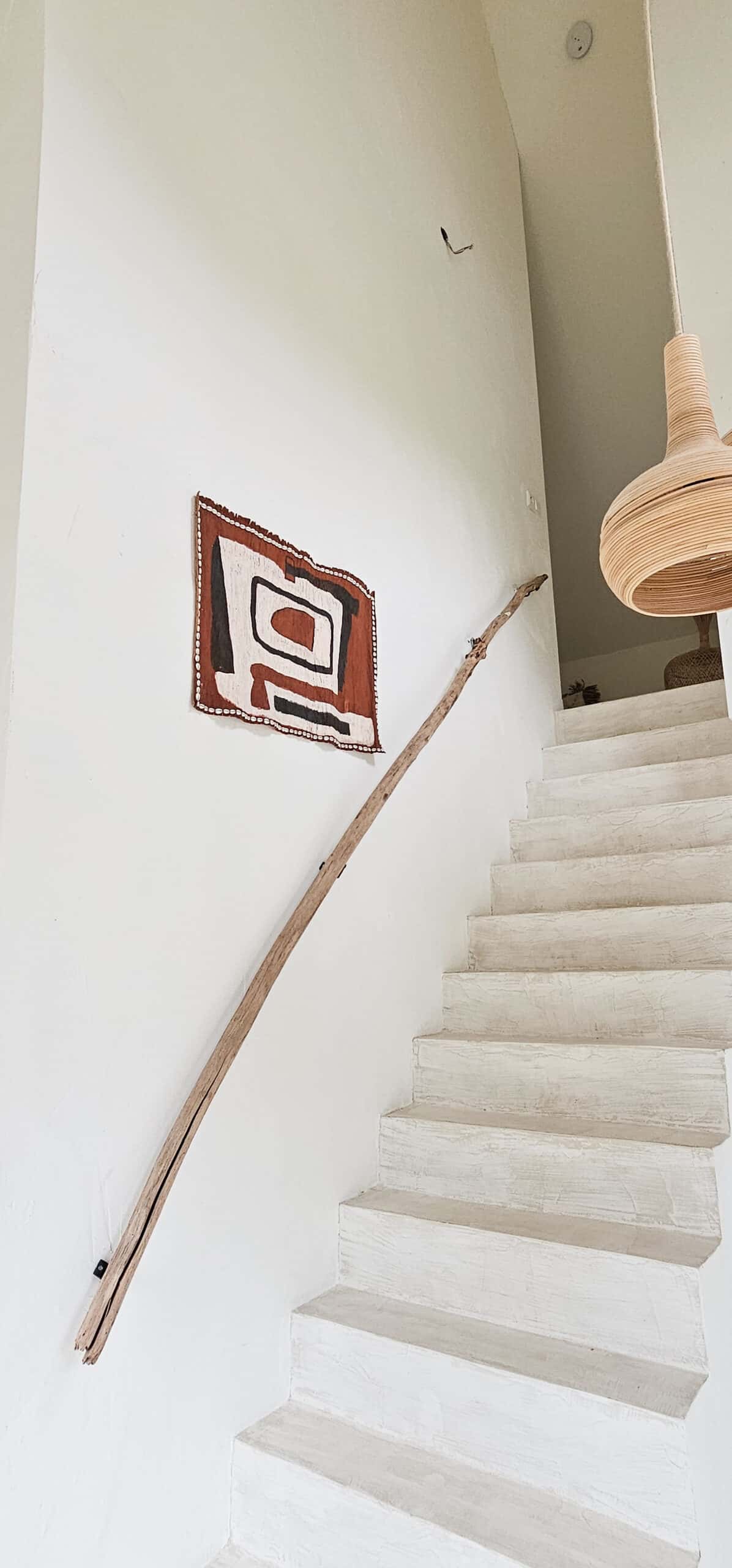 Het patroon roept beelden op van rituelen, dans en verbondenheid met de natuur. Het geheel straalt niet alleen esthetiek uit, maar ook een respectvolle echo van Papua’s spirituele erfgoed.