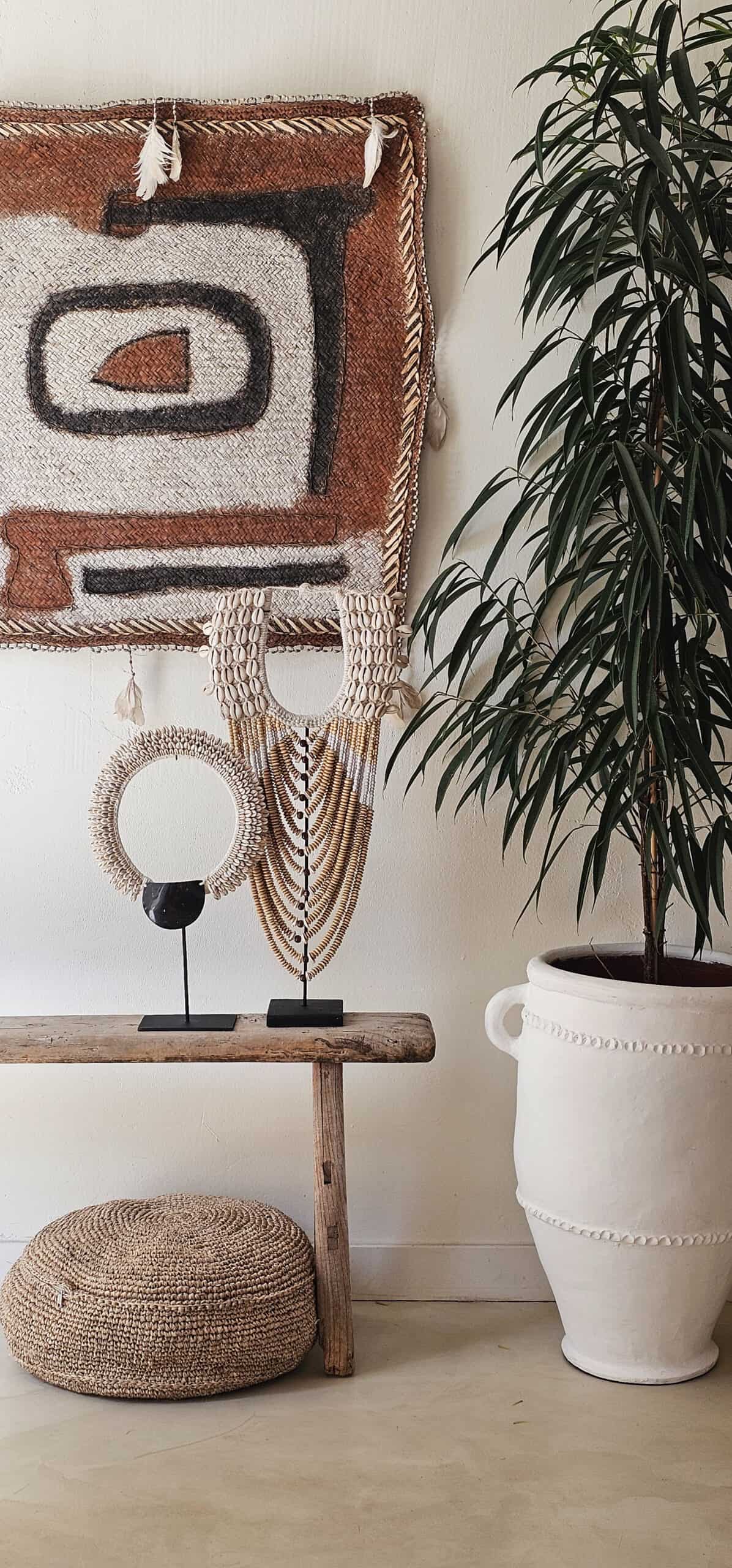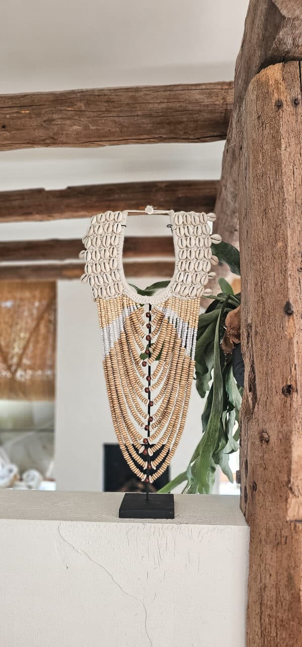 Een indrukwekkend staaltje etnisch design: deze Papua-geïnspireerde schelpenketting is zorgvuldig met de hand vervaardigd op Bali. De ketting bestaat uit meerdere lagen sierlijk gerangschikte kaurischelpen en kralen.