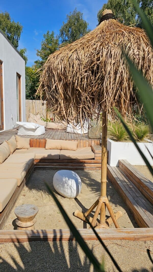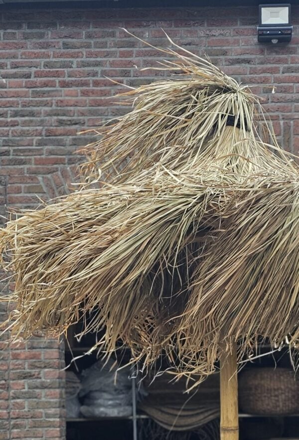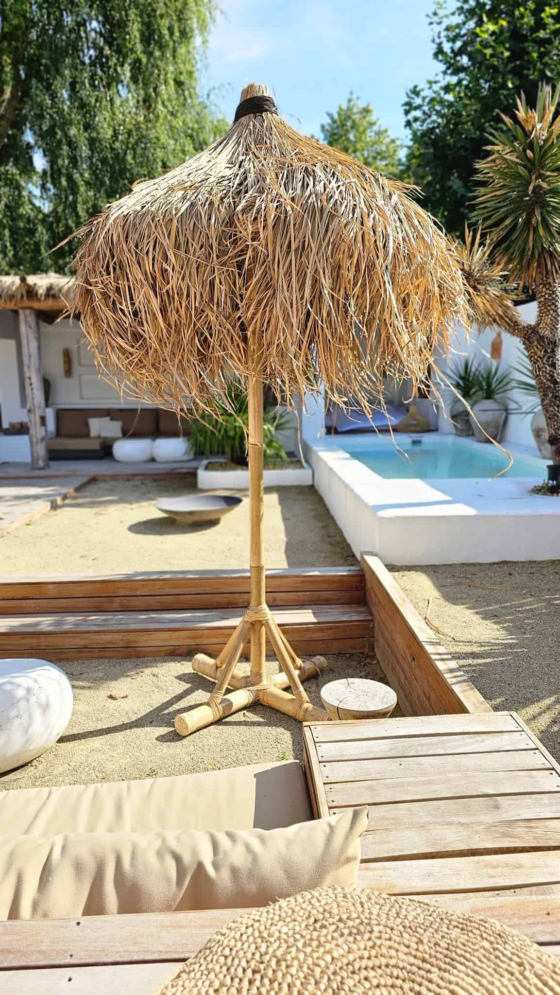 Hoe prachtig is dit! Een echte strand parasol, helemaal ibiza style! Gemaakt van grof linnen.