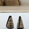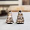 Een peper en zout stel gemaakt van schelp, een tijgerschelp. Een gezellig stel voor in de keuken.