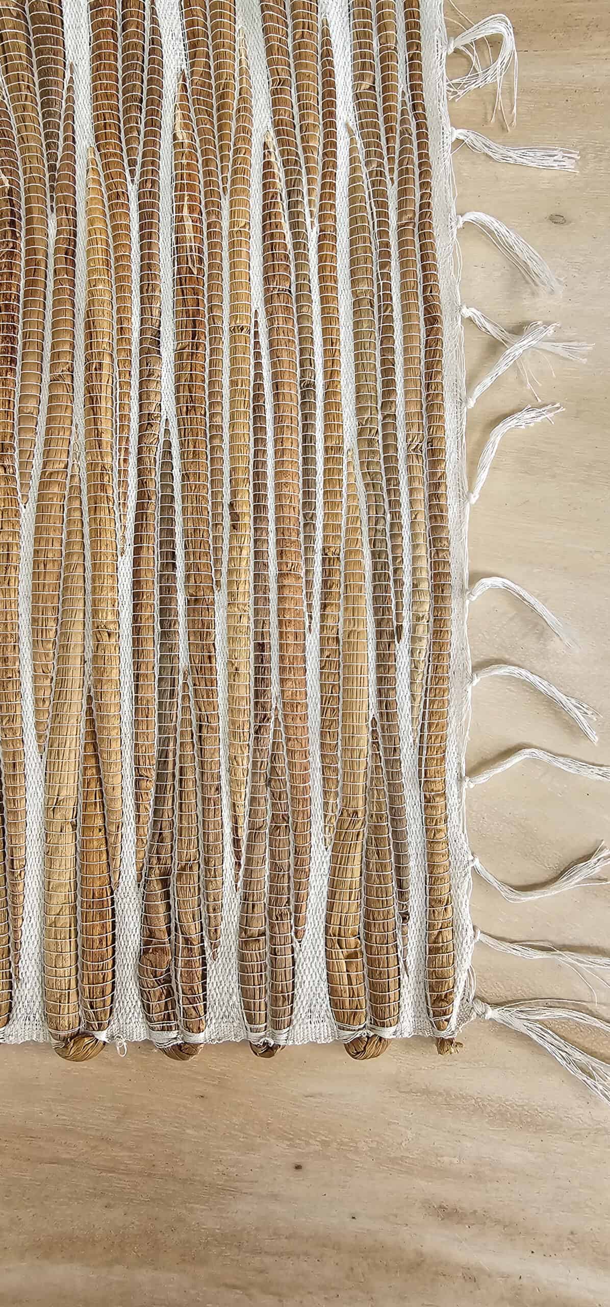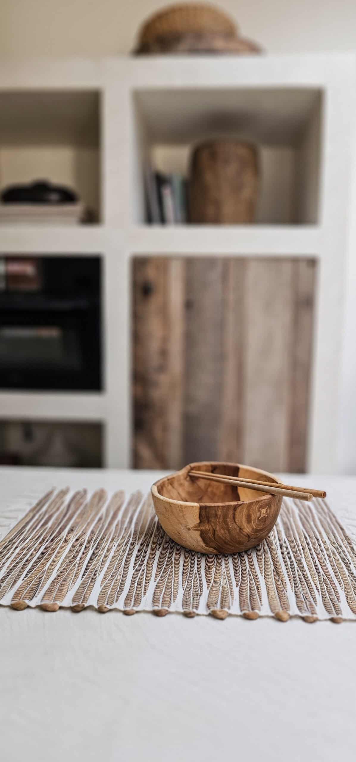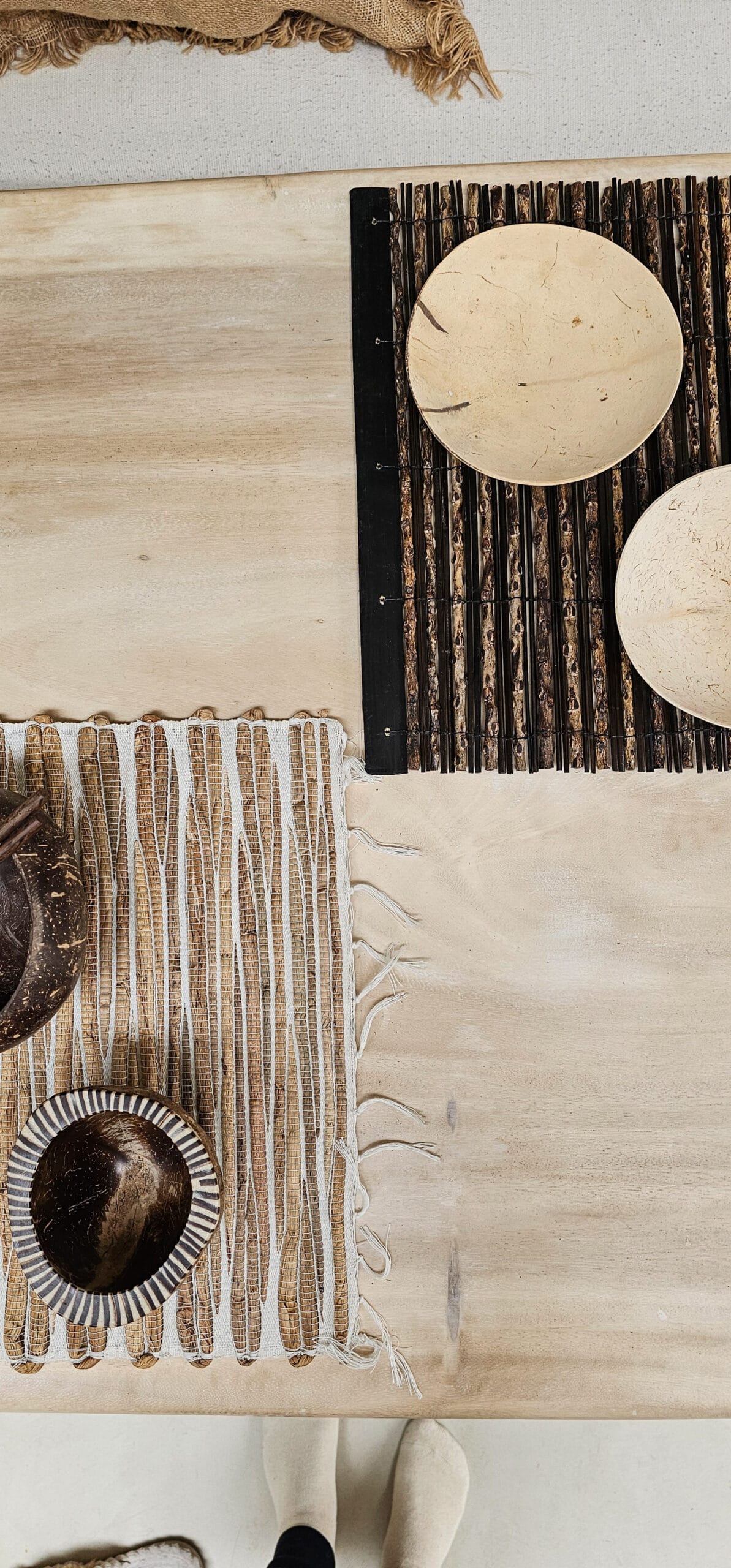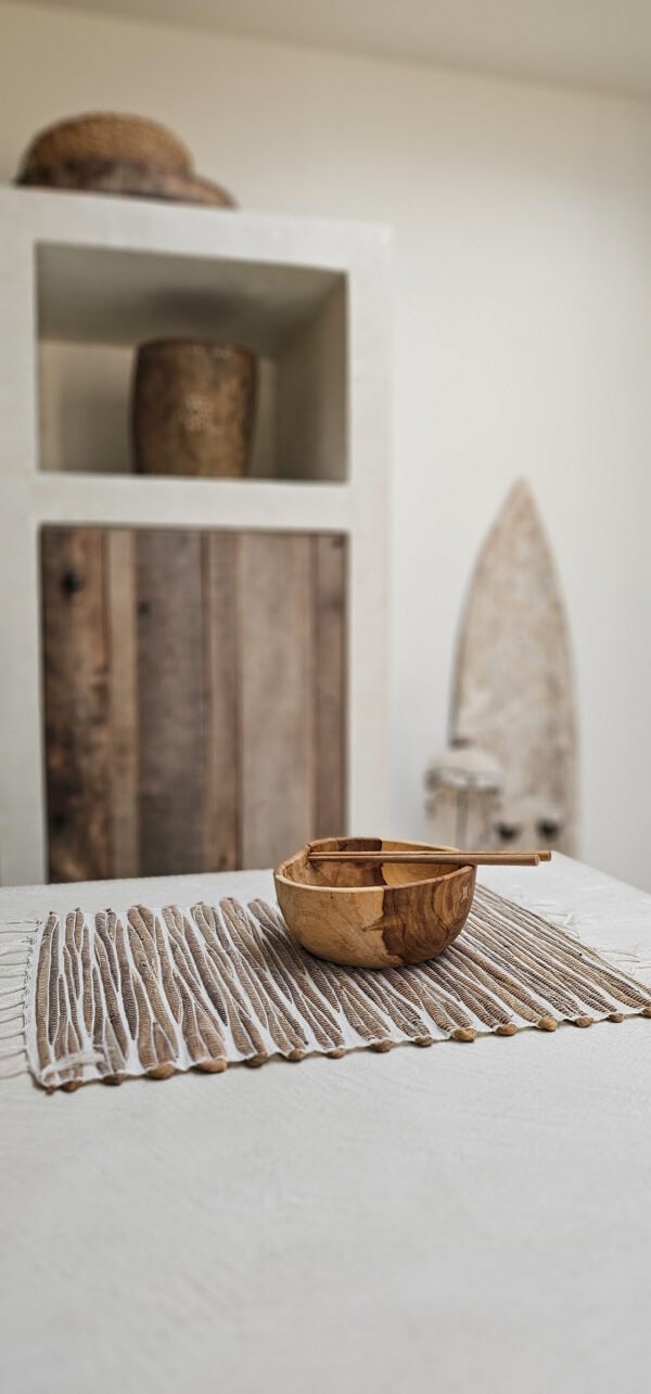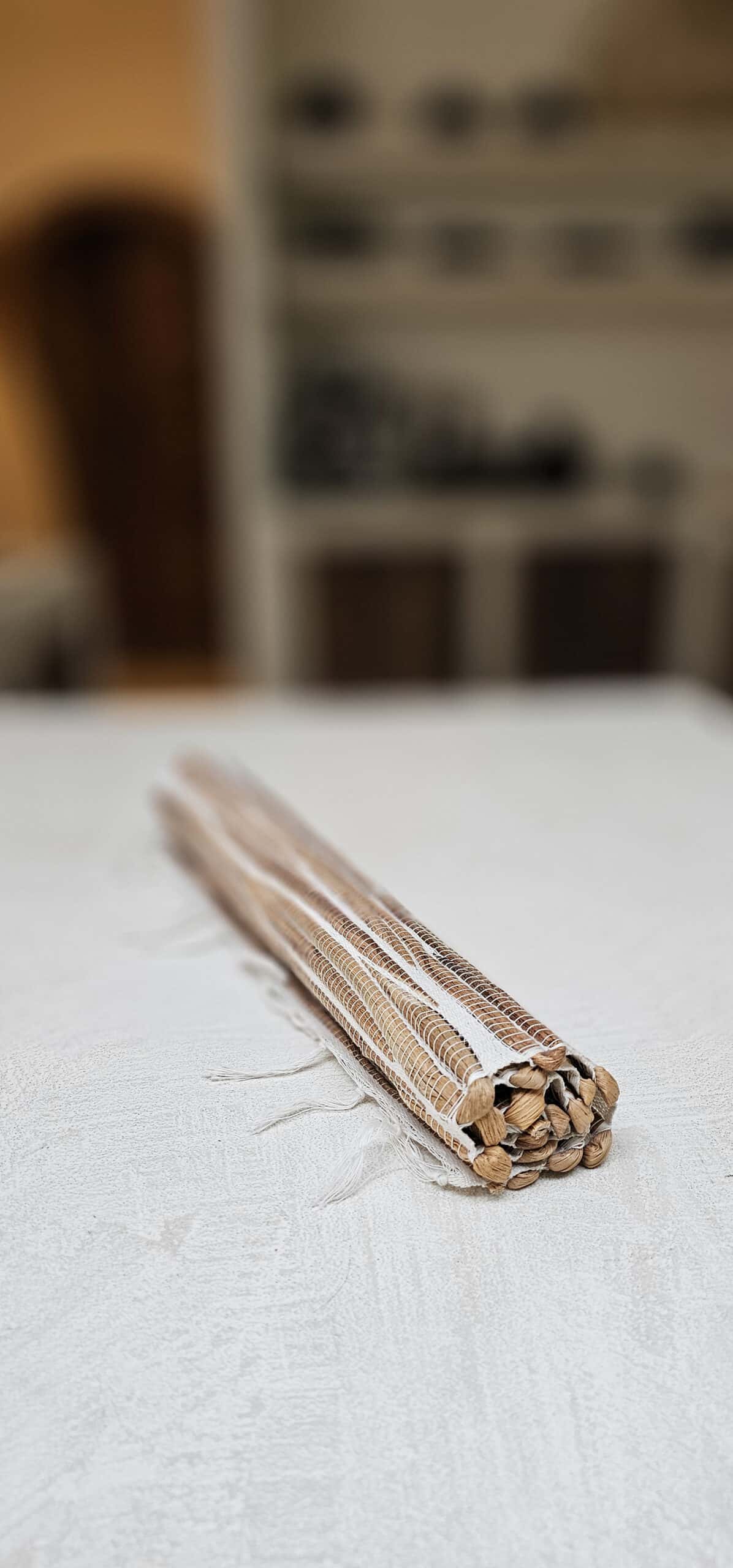 Een stijlvolle placemat in wit-beige kleuren, vervaardigd uit natuurlijke materialen, perfect voor een lichte en verfijnde uitstraling aan je tafelsetting. De subtiele kleurcombinatie voegt een zachte en rustige sfeer toe en past moeiteloos bij diverse interieurstijlen. De placemat zorgt voor een praktische en decoratieve ondergrond, ideaal voor dagelijks gebruik of speciale gelegenheden. Of je nu gaat voor een minimalistische, bohemian of Scandinavische stijl, deze placemat is een veelzijdige aanvulling op je tafeldecoratie.