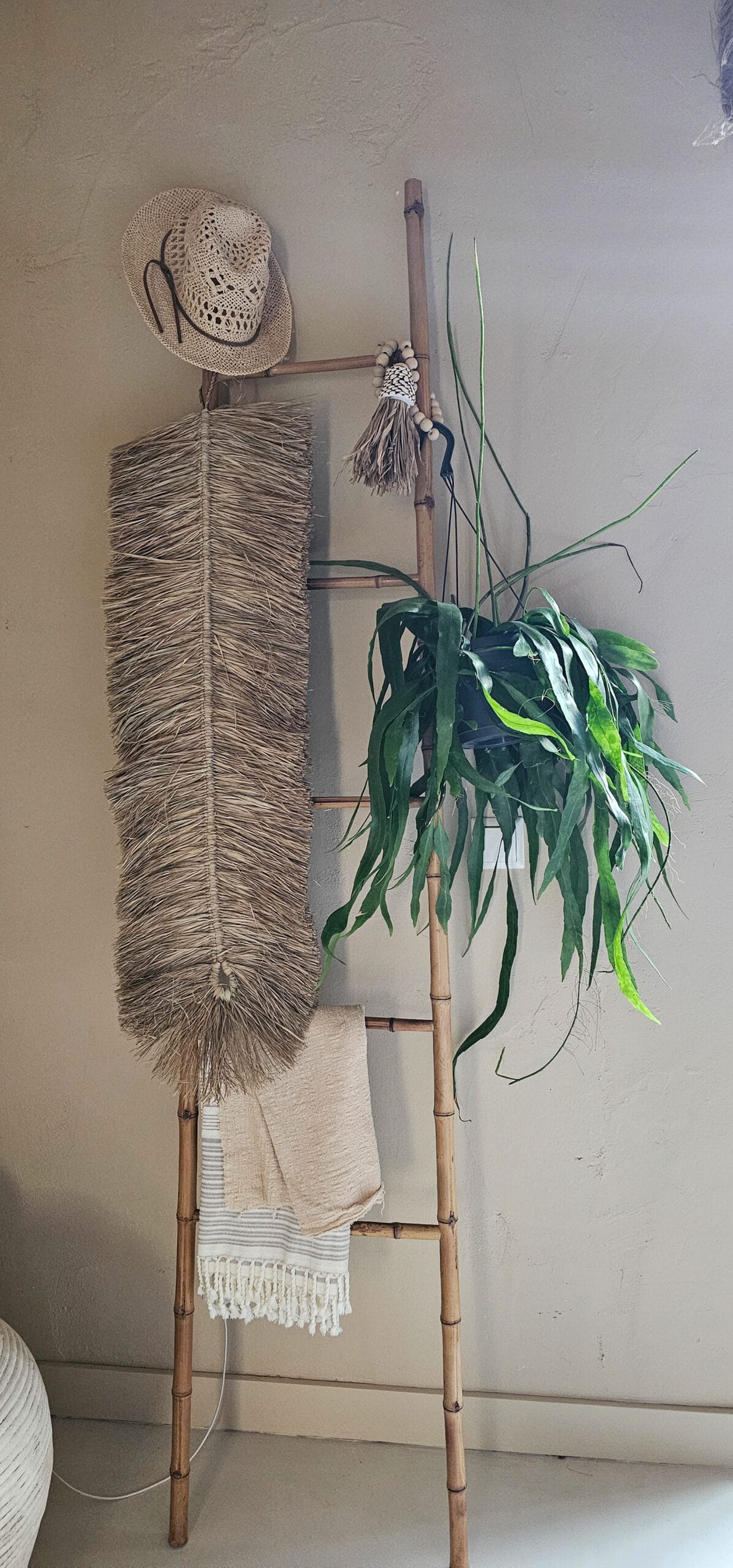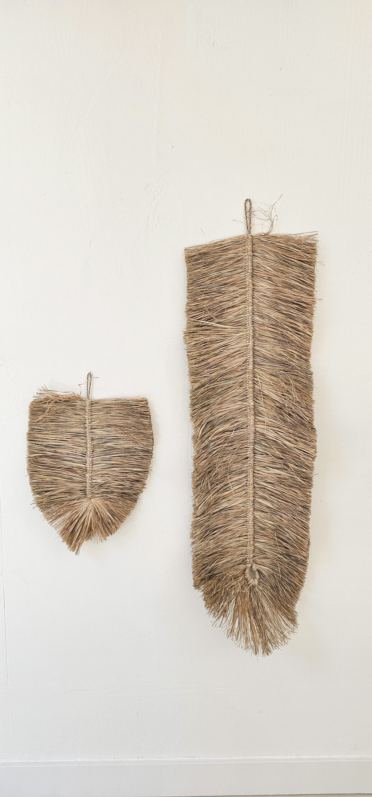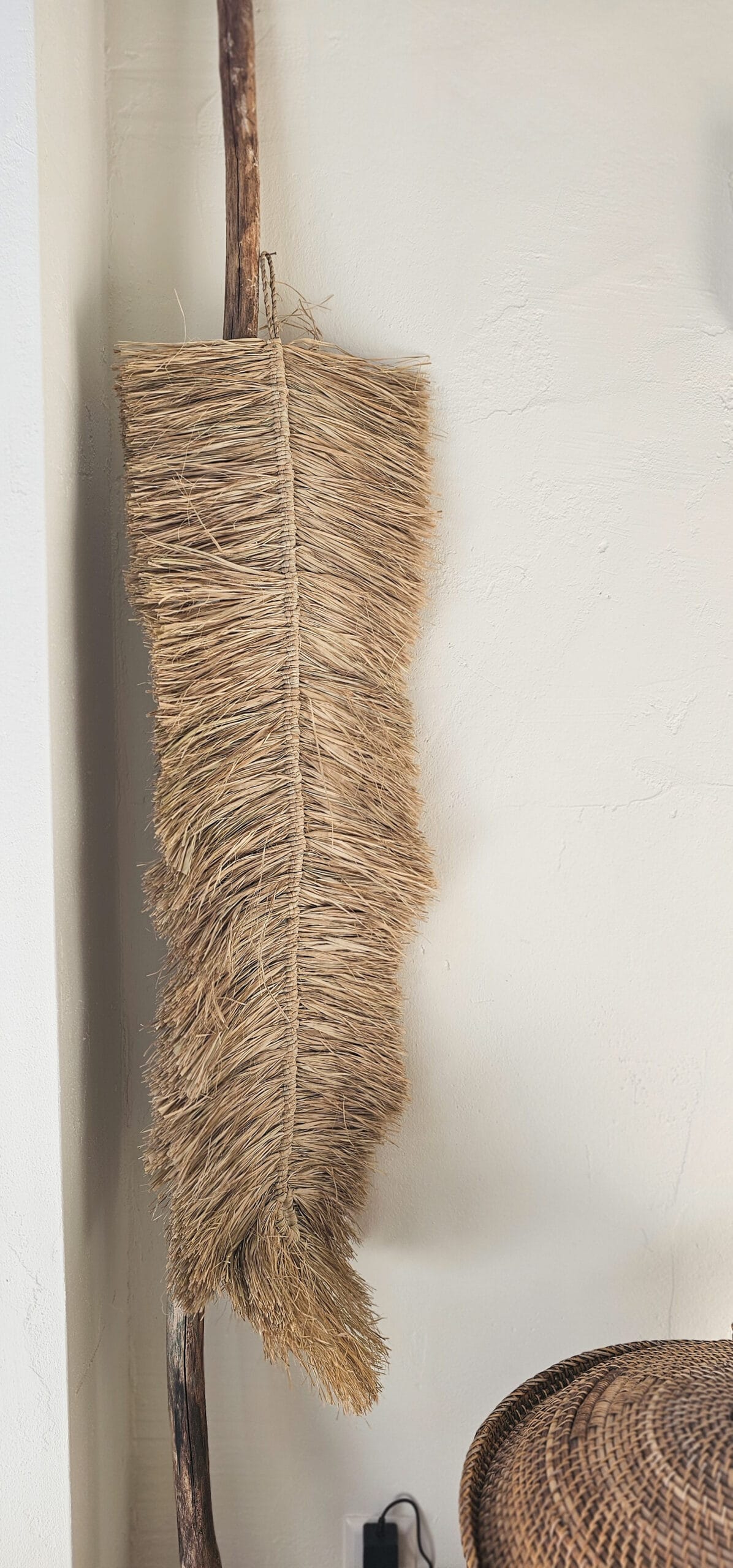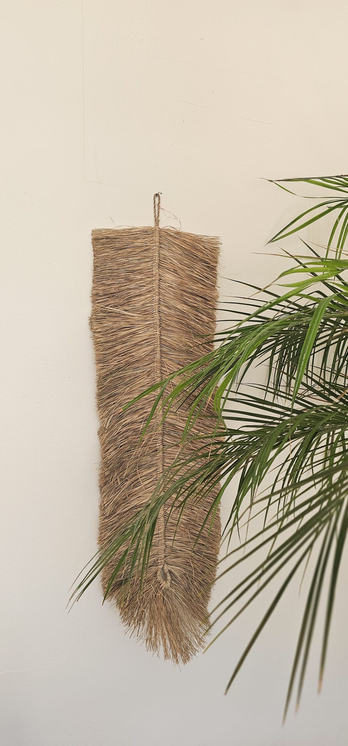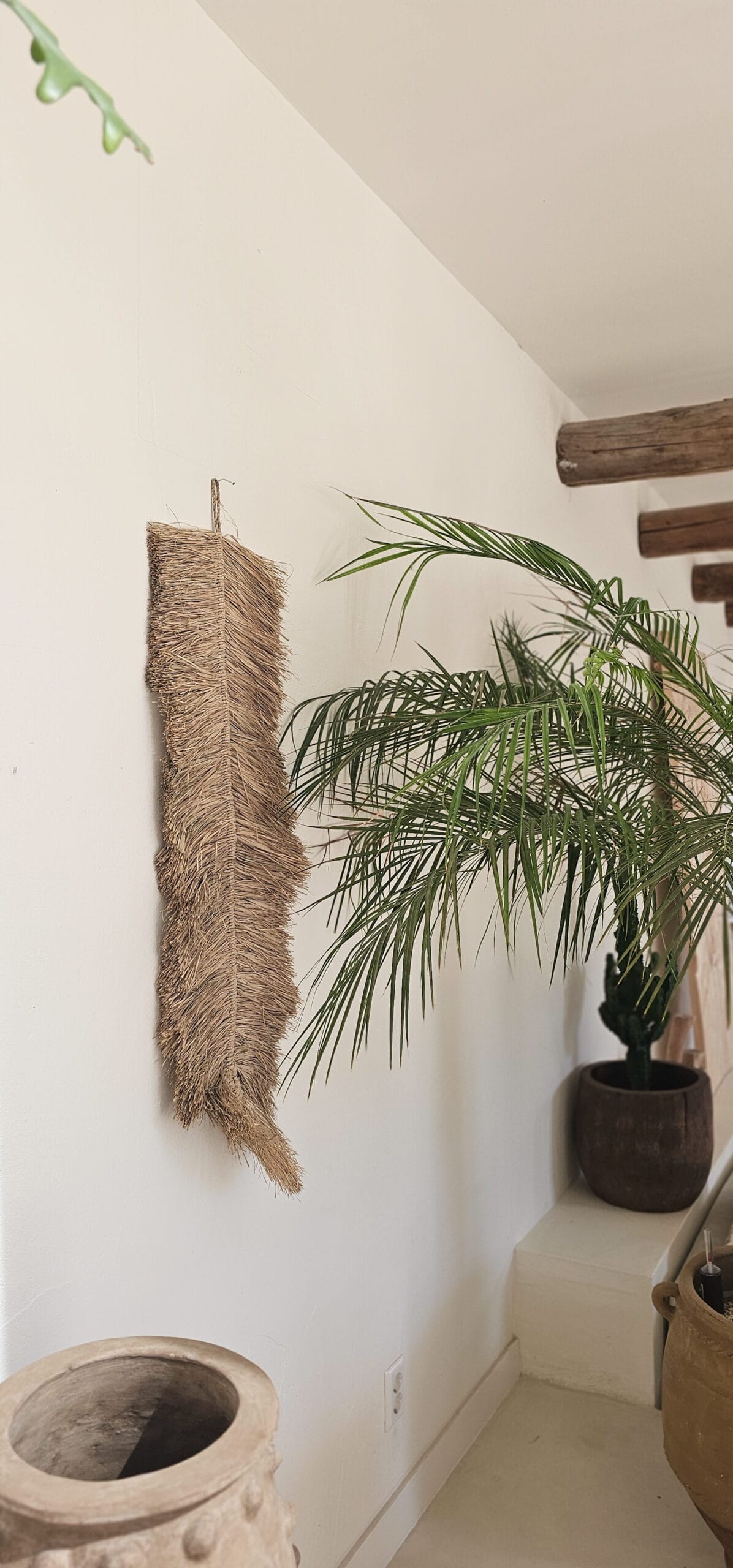 Een veer handgemaakt van raffia. Hier creëer je een echte boho ibiza vibe in je slaap of badkamer. Natuurlijk ook prachtig in de woonkamer of wat dacht je van in de hal.