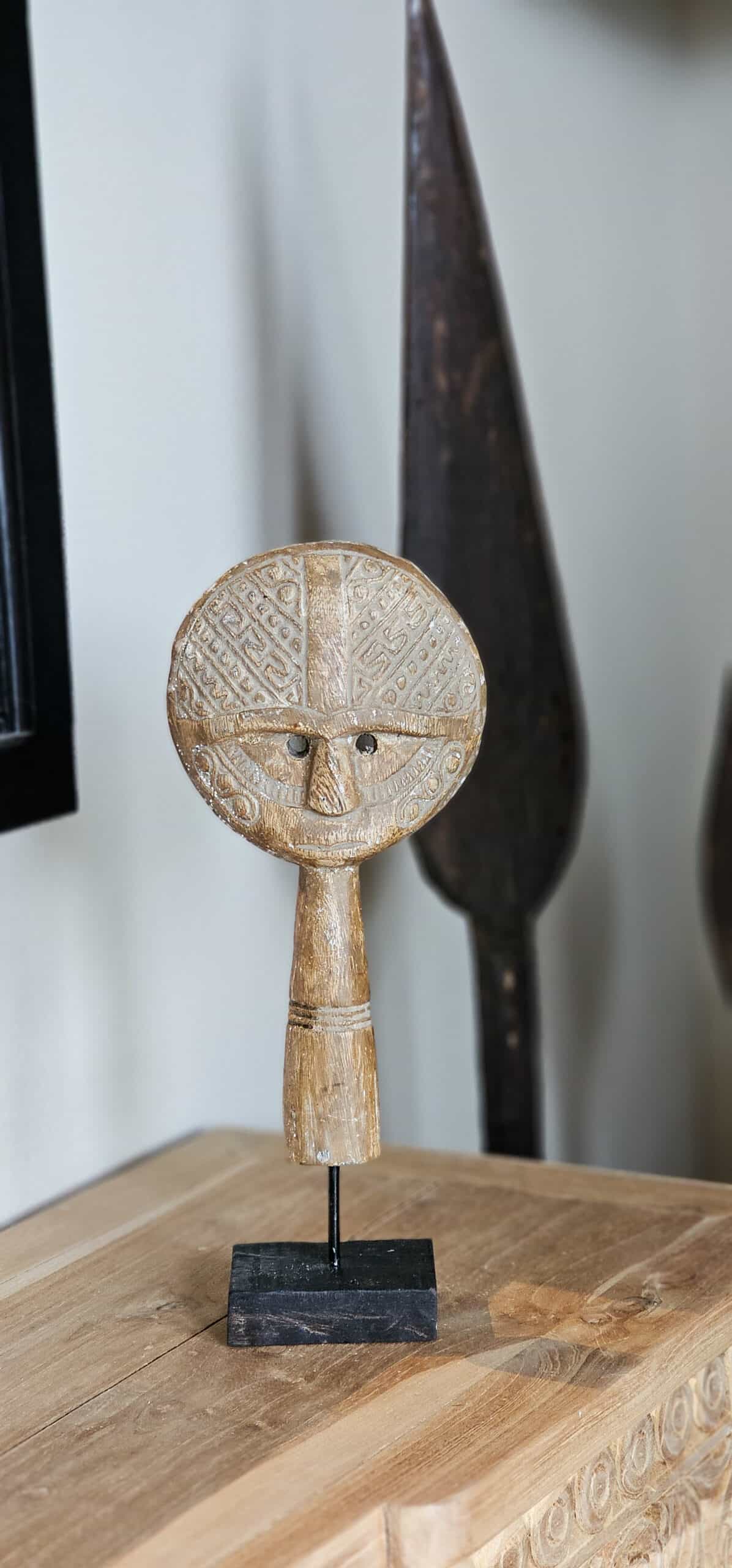 Een elegant en eenvoudig handgemaakt beeldje met verfijnde carving, zorgvuldig vervaardigd in Bali. Dit ambachtelijke kunstwerk straalt authenticiteit en vakmanschap uit, waarbij traditionele Balinese snijtechnieken worden gecombineerd met een minimalistisch ontwerp. De subtiele details en natuurlijke uitstraling maken het een tijdloos decoratief stuk dat harmonie brengt in elke ruimte