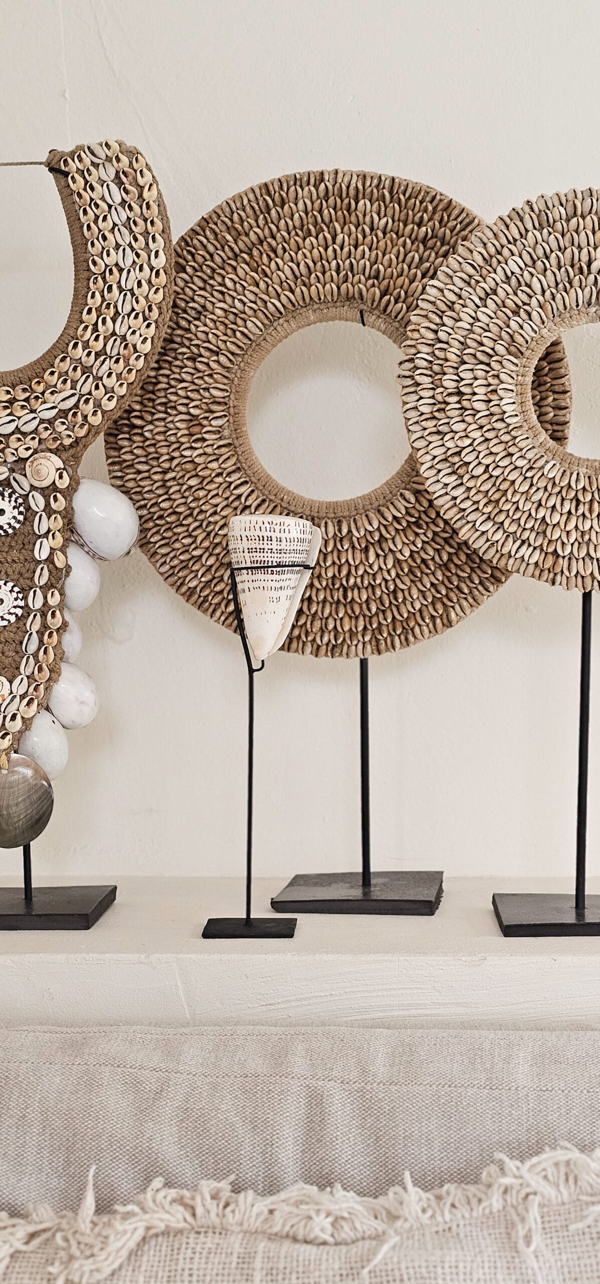 Met zijn organische vorm brengt deze decoratie een vleugje tropische luxe in huis — perfect voor een bohemian, coastal of eclectisch interieur. Elke schelp is uniek, met subtiele variaties in kleur en vorm, wat het ambachtelijke karakter benadrukt.