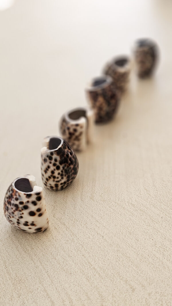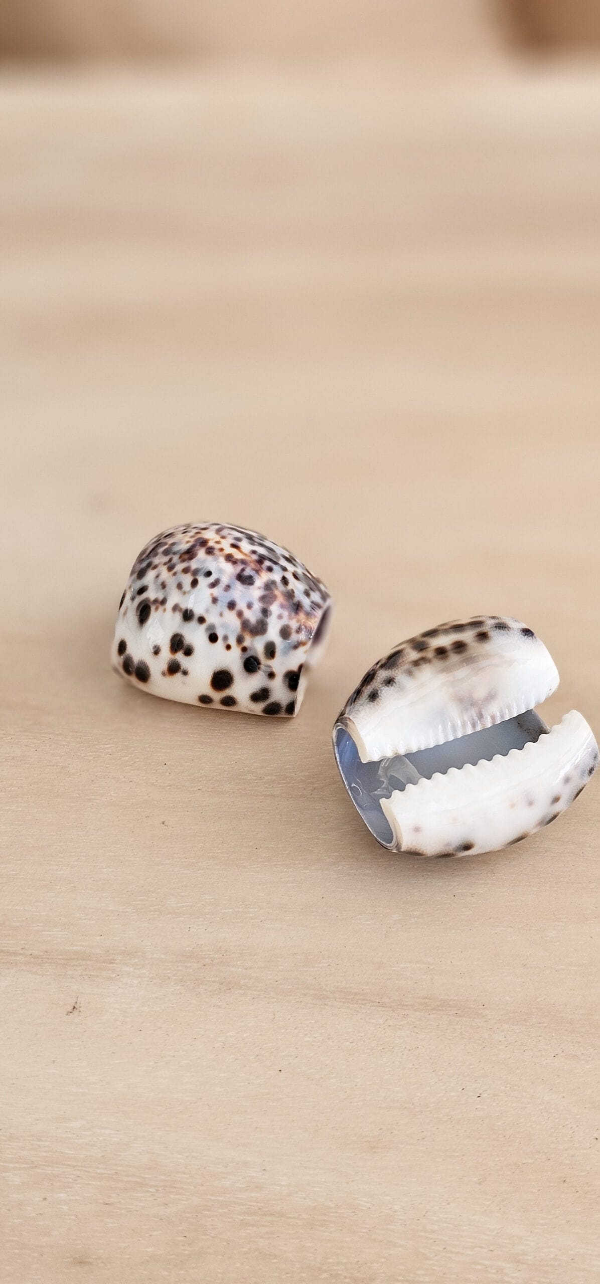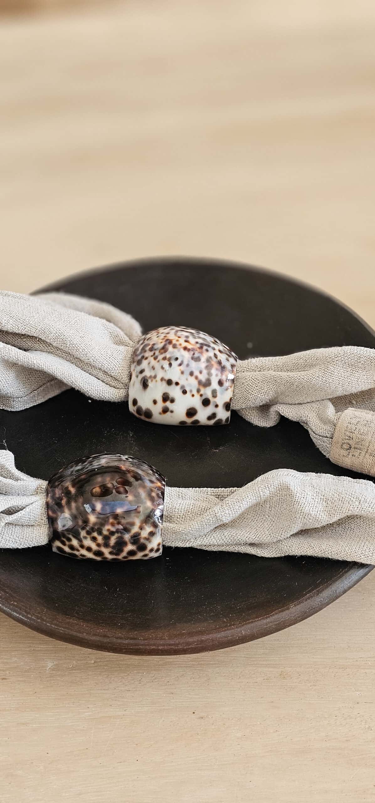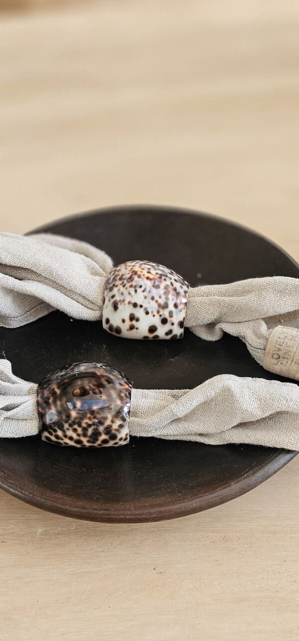 Een elegante servetring gemaakt van tijgerschelp, die een verfijnde en natuurlijke uitstraling aan je tafelsetting geeft. De unieke patronen en warme tinten van de tijgerschelp zorgen voor een luxe sfeer en maken elk stuk uniek. Perfect voor zowel formele diners als gezellige etentjes, deze servetring voegt een stijlvolle finishing touch toe aan je tafeldecoratie. Dankzij de stevige en duurzame afwerking blijft hij lang mooi en is hij een tijdloze aanvulling op je serviescollectie.