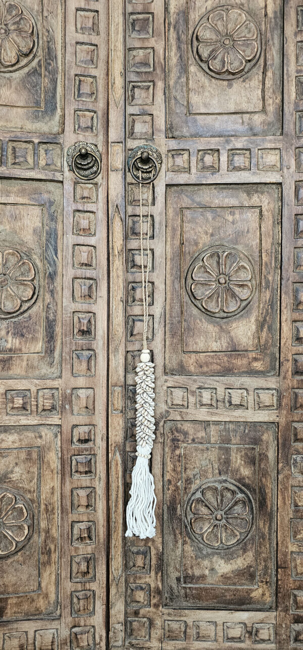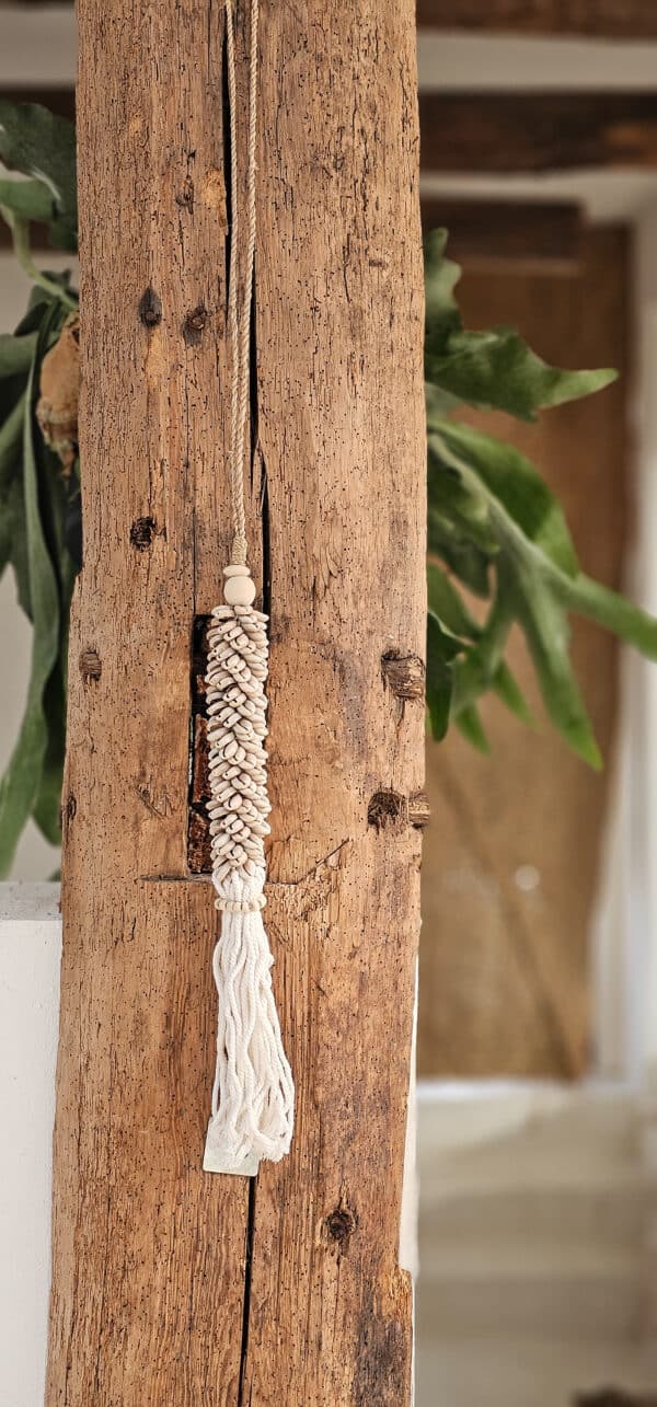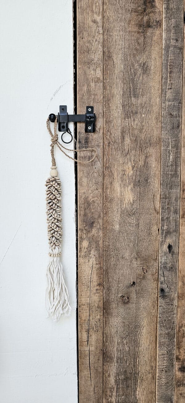 Deze wat langere schelpenstreng is leuk om aan de (kast)deur te hangen als decoratie. Ook leuk in een schaal als decoratie.
