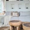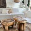 Deze tafeltjes zijn uit één stuk gemaakt en daarom prachtige puur natuur exemplaren. Qua hoogte zit ongeveer 5 cm verschil. Het kleinere tafeltje is wat hoger dan de bredere tafel waardoor ze prachtig staan bij elkaar! Echt een geweldig stel samen!