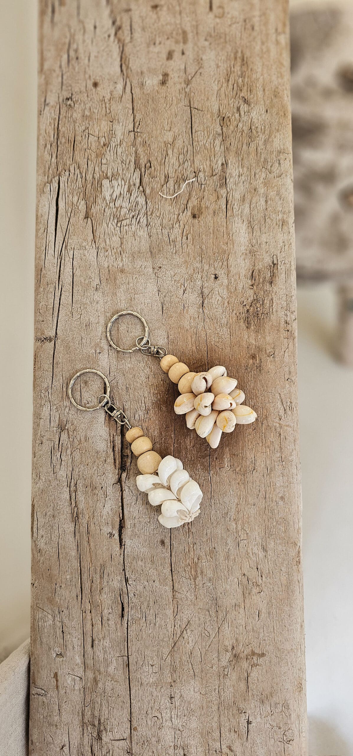 Superleuke sleutelhangers. Voor aan je sleutelbos maar ook leuk om aan je tas te hangen. Deze is met kaurischelpjes.