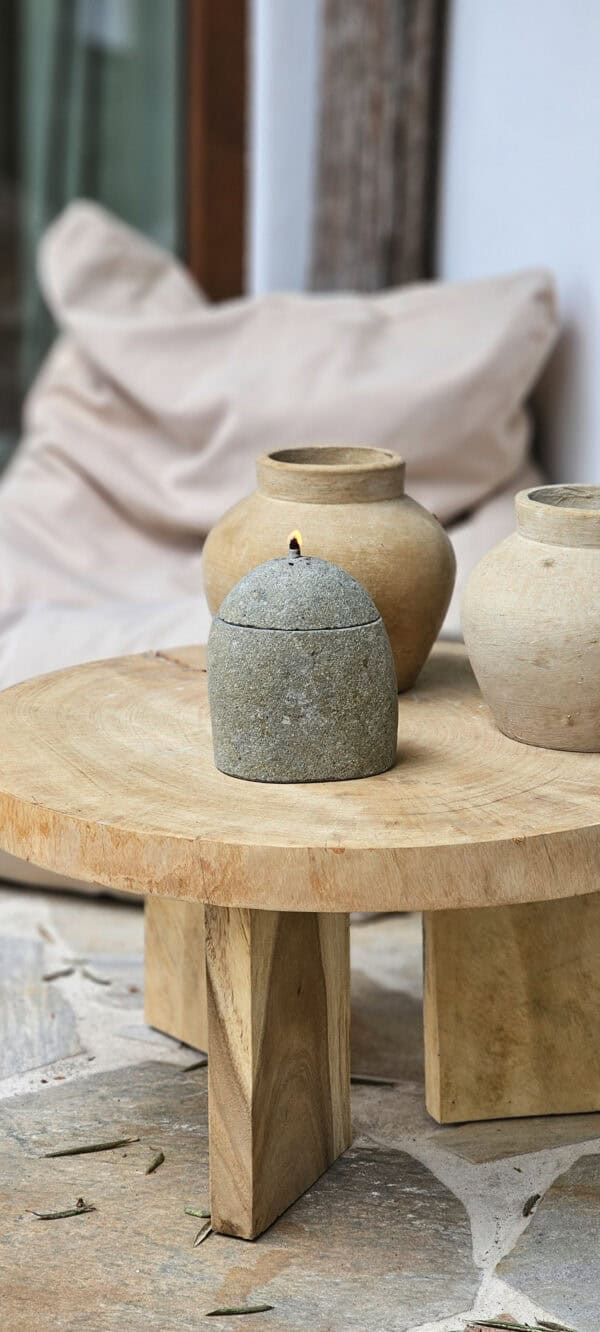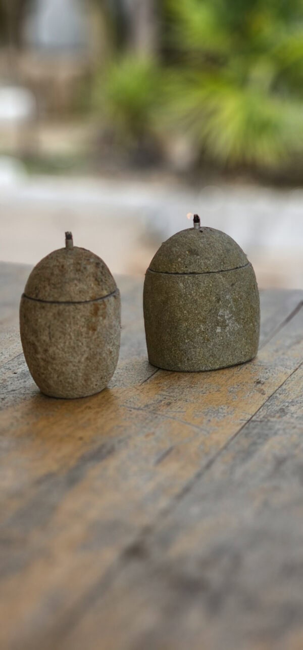 Tijdloze Sfeerverlichting. Deze stijlvolle stenen olielamp biedt een warme, sfeervolle gloed en is een perfecte aanvulling op elk interieur of buitenruimte. Gemaakt van robuust natuursteen, heeft de lamp een rustieke en elegante uitstraling.