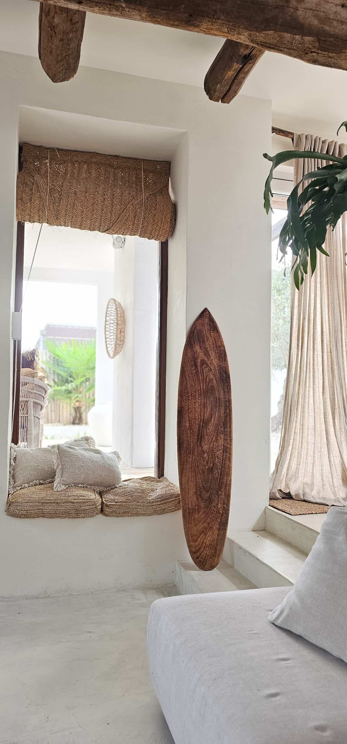 Deze board is een echte eyecatcher! Een decoratieve surfboard tegen je muur. Deze board is onbewerkt en heeft dus de originele houtskleur met accenten als gevolg van een subtiele verbrandingseffect. Dit geeft karakter en diepte aan de board.