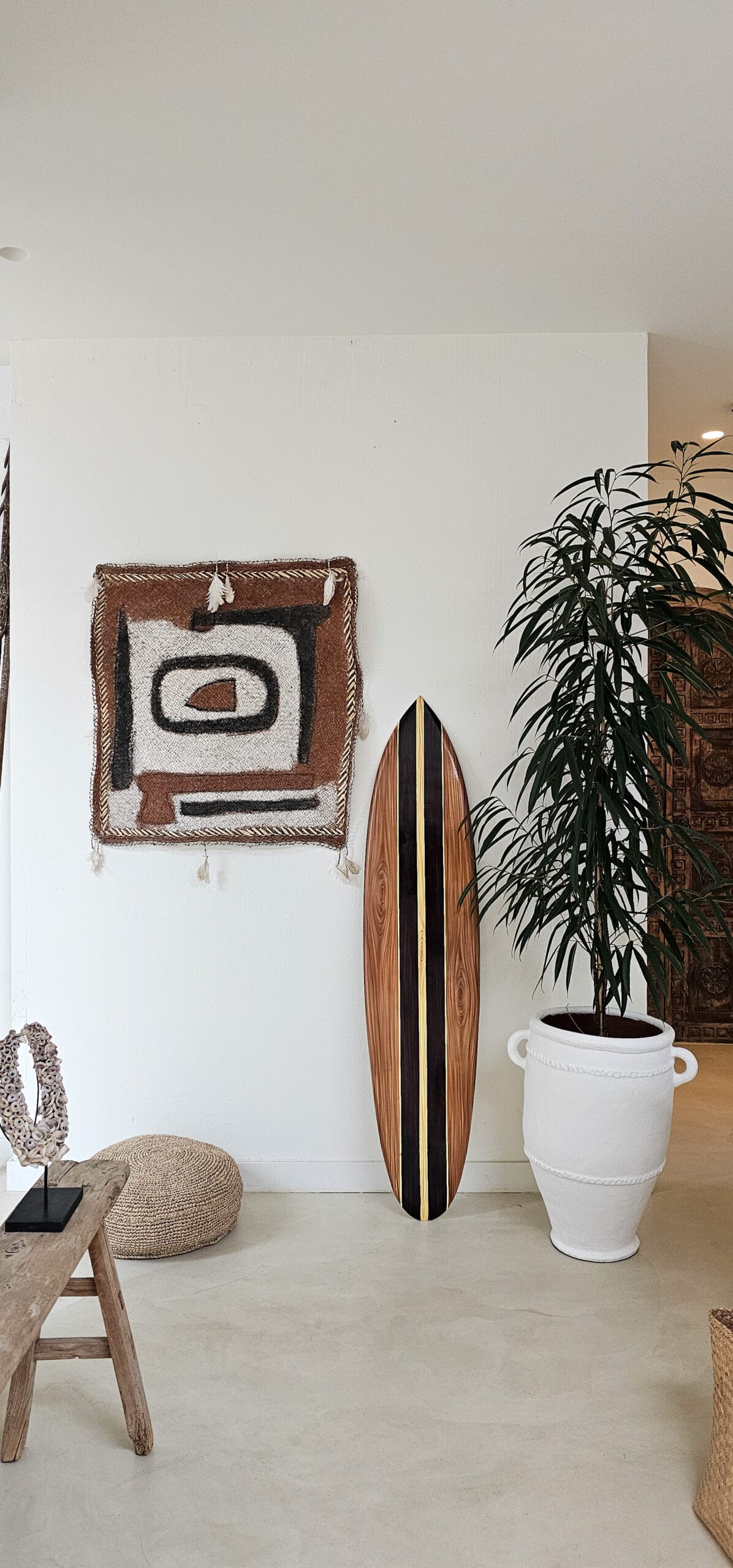 Hoe cool is dit! Dit is een zeer gewilde populaire plank door de retro kleuren. Met bruine en beige strepen. In de film ´Beach Boys´ wordt de vergelijkende board Beach Boys met hetzelfde uiterlijk gebruikt. Als je een beachy look wilt dan mag deze natuurlijk niet ontbreken. De board Beach Boys is de variant met donkere middenstreep. In de badkamer staat tie ook helemaal te gek. Ik vind ze in ieder geval geweldig!