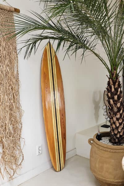 Dit board is een echte eyecatcher met z’n oude look! Een decoratieve surfboard tegen je muur. Als je een beachy look wilt dan mag deze natuurlijk niet ontbreken. Ik vind ze in ieder geval geweldig! Ze zijn allemaal uniek en kunnen dus qua vorm en kleur iets afwijken van de foto. Zet er pootjes onder en je hebt een zeer unieke salontafel!