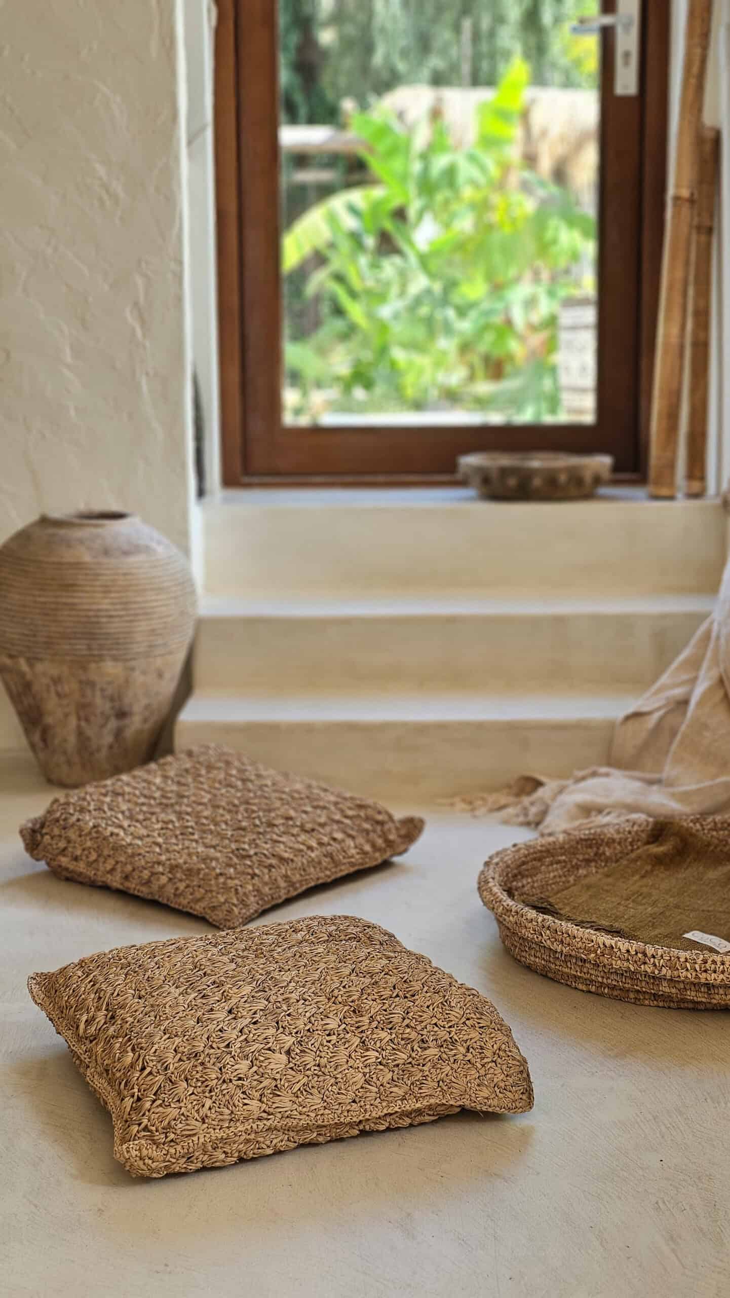 Breng natuurlijke rust en textuur in je interieur met dit handgemaakte kussen van gevlochten zeegras. Elk exemplaar is met zorg vervaardigd door ambachtslieden in Java, waarbij traditionele vlechttechnieken worden gecombineerd met een eigentijdse uitstraling. Het grove zeegras geeft het kussen een robuuste, organische look die perfect past in bohemian, coastal of minimalistische settings.